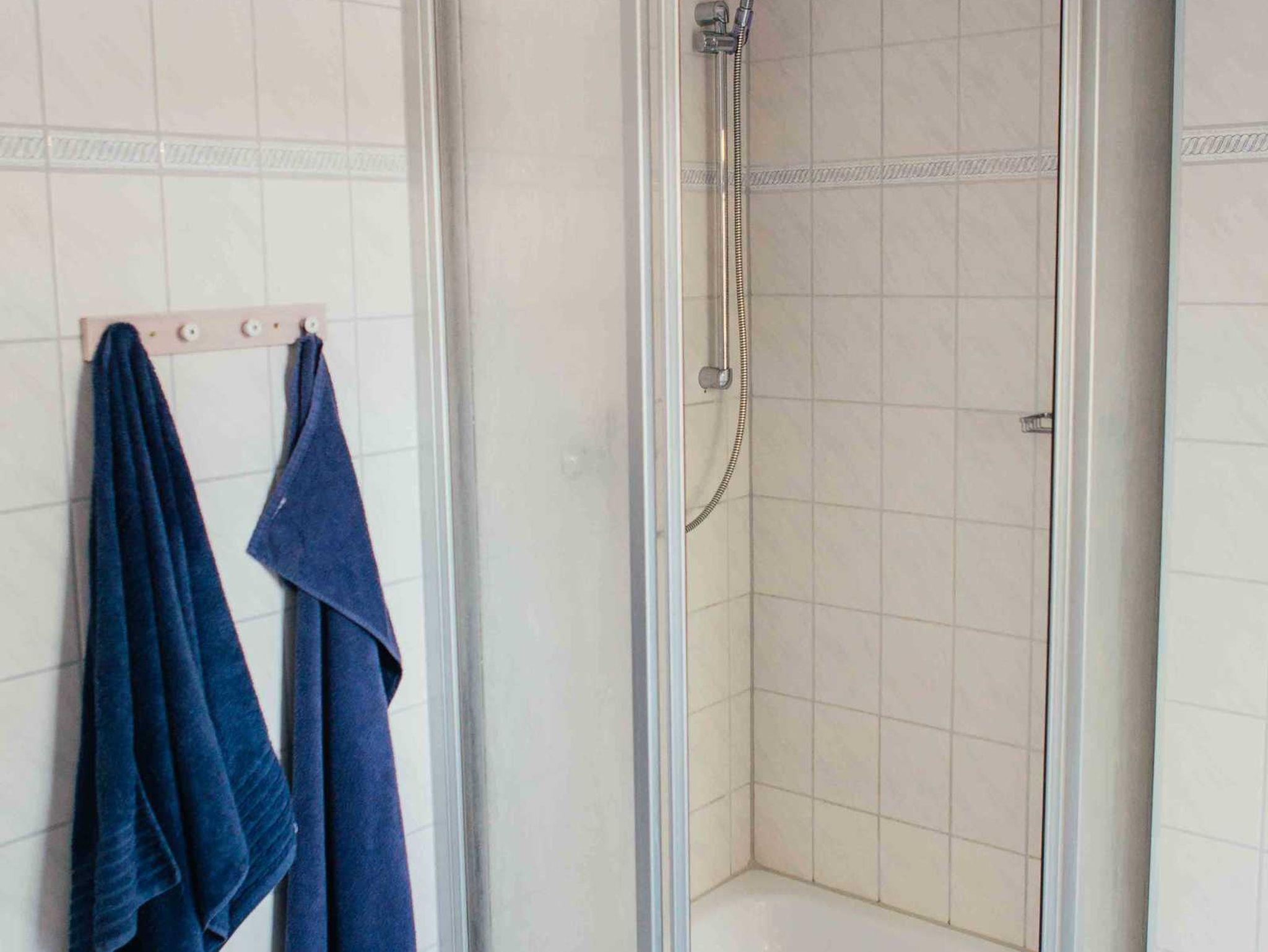 In der 2. Etage befinden sich 2 Schlafzimmern mit Doppelbetten, sowie ein Badezimmer mit Dusche, WC und Münzwaschmaschine.