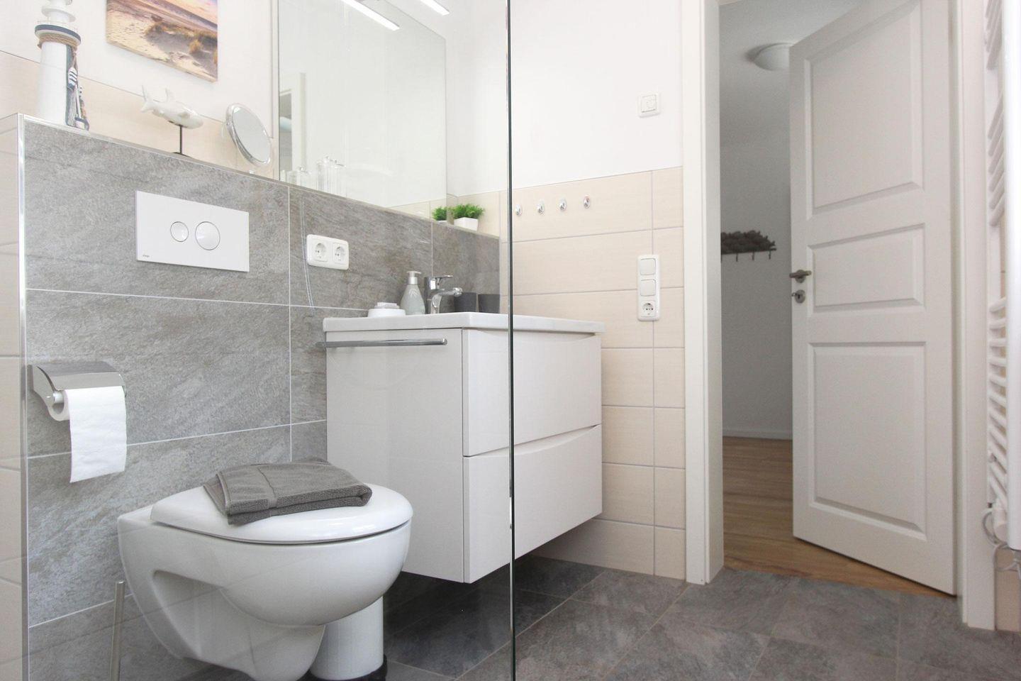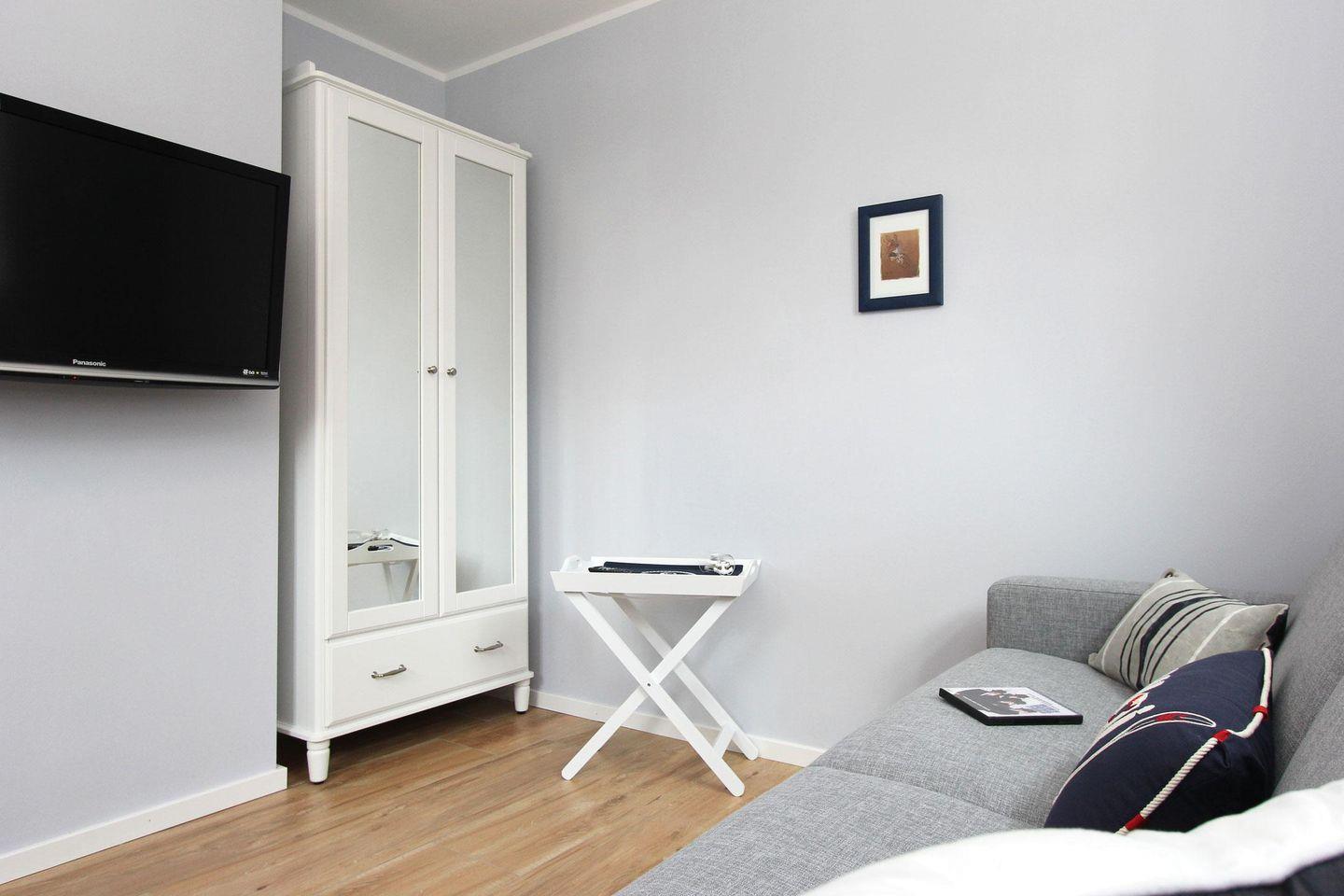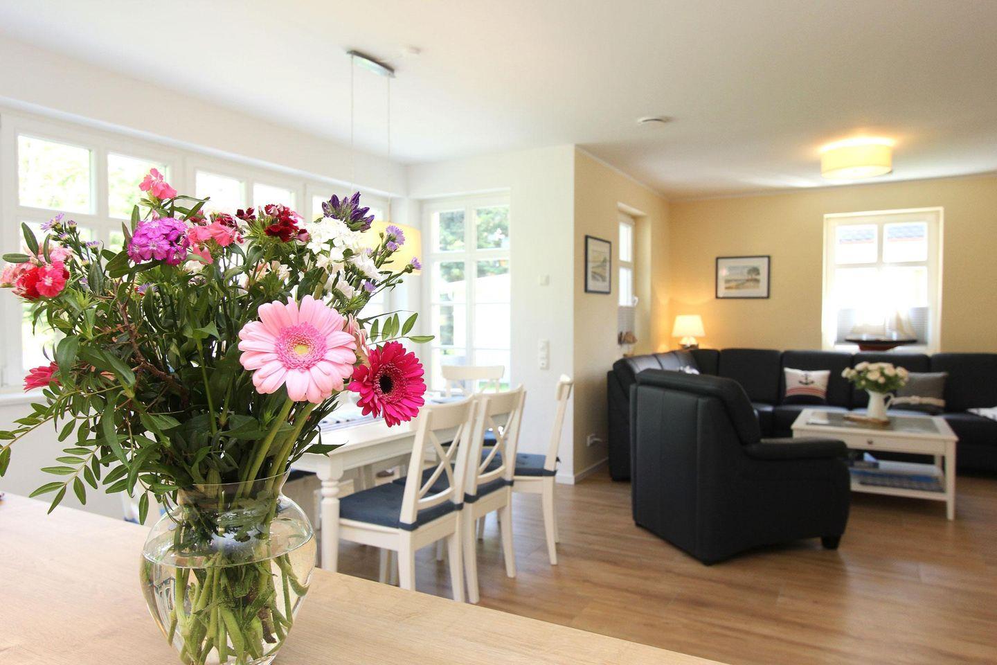 Im Erdgeschoss des im nordisch maritimen Stil eingerichteten Hauses beeindruckt das große Wohnzimmer mit Ledercouch und 65-Zoll HD-TV, das in den Essbereich mit Kaminofen übergeht und in die offene Küche mündet. Die Sonnenterrassen sind mit Gartenmöbeln, Sonnenschirm und Strandkorb ausgestattet. Schon morgens werden Sie hier von der Sonne verwöhnt und abends bietet sich hier die Gelegenheit für gemütliche Grillabende. Im Obergeschoss erwarten Sie drei Schlafzimmer mit Doppelbett, von welchem eins mit einem Fernseher ausgestattet ist.