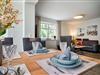 Wohnzimmer mit Wintergarten, Ecksofa und Sessel