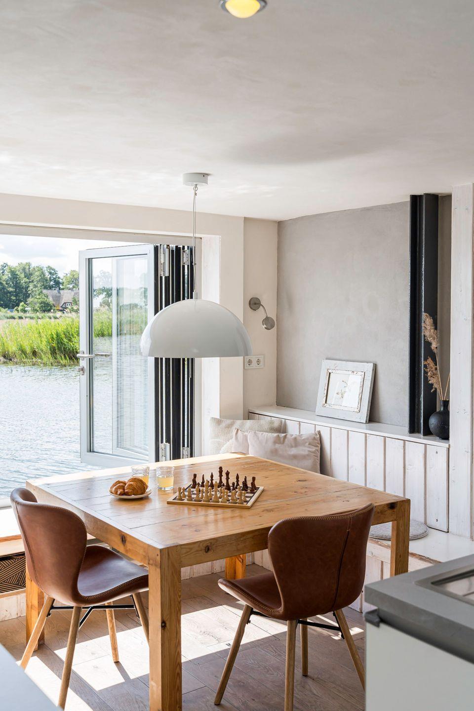Im Inneren erwartet Sie eine großzügige, lichtdurchflutete Wohnküche mit gemütlichem Essbereich – ideal für entspannte Stunden mit Familie oder Freunden. Zwei Schlafzimmer mit komfortablen Doppelbetten bieten viel Platz und Ruhe. Eines dieser Schlafzimmer ist zusätzlich mit einer freistehenden Badewanne mit Blick aufs Wasser sowie einem eigenen WC ausgestattet – ein ganz besonderes Highlight. Zwei weitere Kabinen mit je zwei Etagenbetten bieten zusätzliche Schlafmöglichkeiten und sind besonders bei Kindern oder befreundeten Paaren beliebt. Insgesamt verfügt die Störtebeker über drei weitere Badezimmer mit Dusche sowie insgesamt vier WCs, sodass auch bei voller Belegung ein hohes Maß an Komfort gewährleistet ist. Alle Zimmer bieten einen schönen Blick aufs Wasser und eröffnen eine traumhafte Sicht in die naturbelassene Umgebung rund um den Prerow Strom.