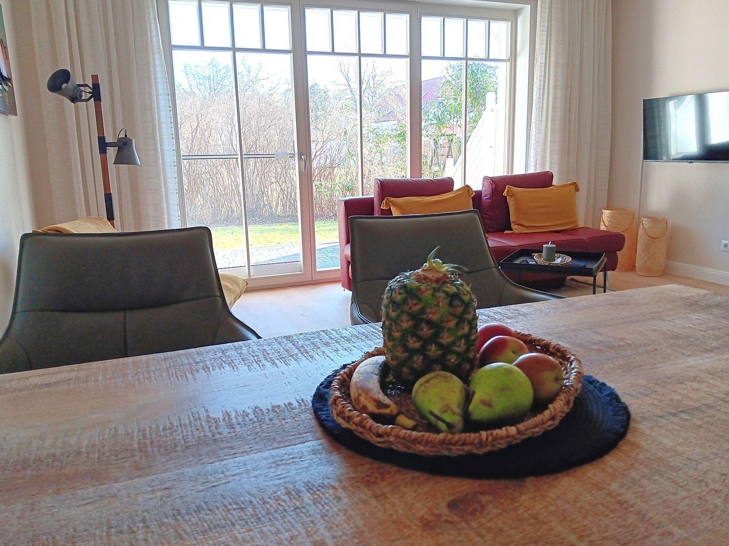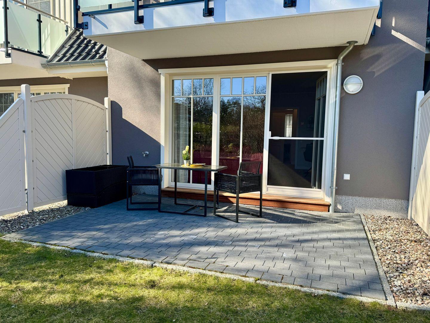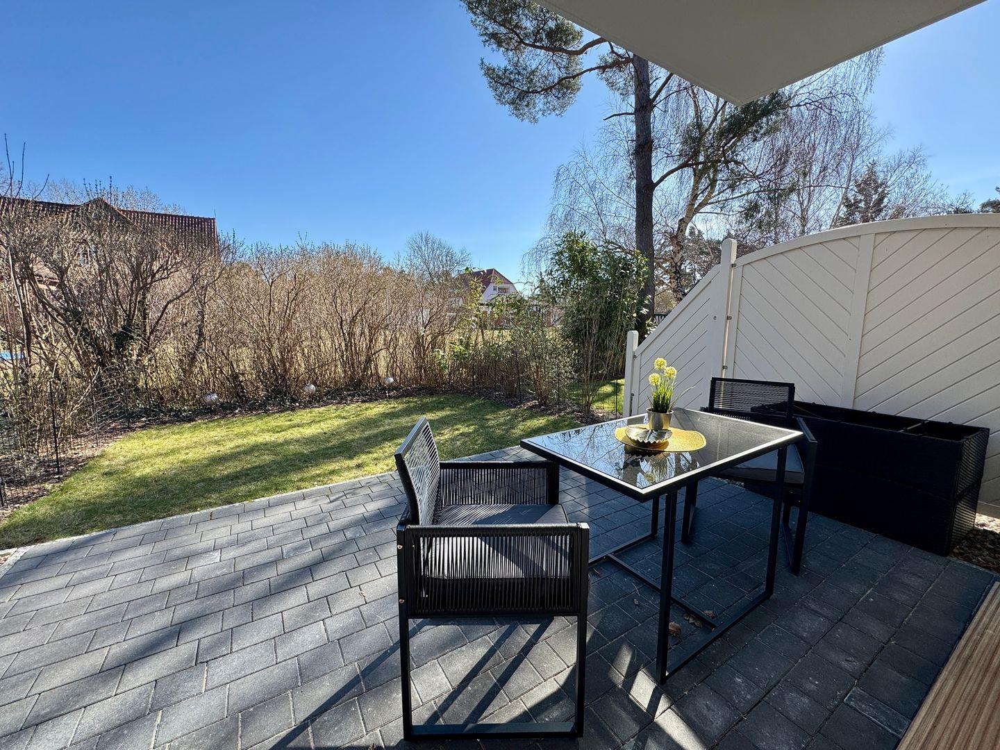 Ein besonderes Highlight ist der Außenbereich: Auf der Terrasse und im Garten (eingezäunt) wurde neben den hundefreundlichen Eigenschaften auch an den Komfort der Halter gedacht. Sitzmöglichkeiten laden zum Verweilen ein, während Sie Ihren Hund entspannt im Blick behalten können. Die übersichtliche Gestaltung ermöglicht es Ihnen, jederzeit die Kontrolle zu behalten. Sie können die frische Ostseeluft genießen, ein Buch lesen oder einfach die Stille des Morgens erleben. Vielleicht starten Sie hier mit einer Tasse Kaffee in den Tag oder lassen den Abend unter freiem Himmel ausklingen.