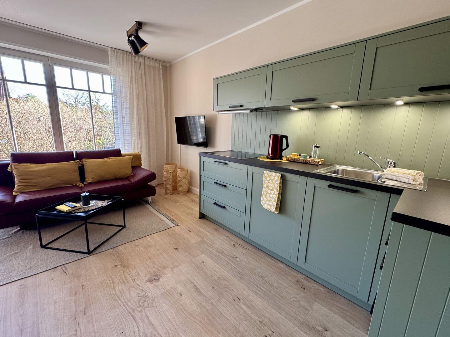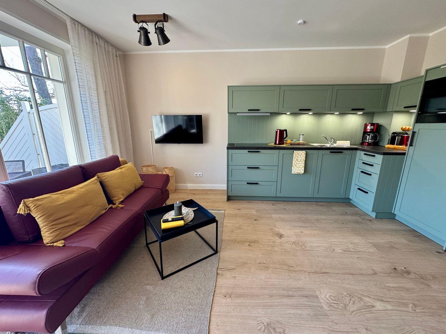 Die offene Küche ist perfekt in den Wohnraum integriert und bietet alles, was Sie für genussvolle Urlaubstage brauchen. Hier können Sie den Tag mit frischem Kaffee beginnen oder nach einem langen Strandspaziergang gemeinsam kochen und den Abend in entspannter Atmosphäre ausklingen lassen.