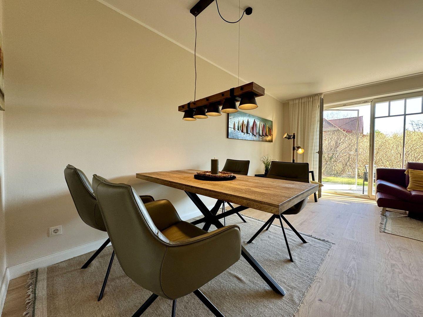 Modernes Nichtraucher-Appartement (50 m²) im Parterre mit 2 Zimmern, 1 Schlafzimmer und Platz für bis zu 3 Personen. Offene Küche zum Wohnzimmer mit Cerankochfeld, Backofen, Spülmaschine und Mikrowelle. Bodengleiche Dusche, Waschmaschine, WLAN, 2 TVs (Satellit) und Fußbodenheizung. Terrasse mit Gartenmöbeln, Garten und Sichtschutz. Strand und Meer ca. 500 m, Restaurant 200 m. Haustier erlaubt (max. 1). 2 kostenlose Privatparkplätze, eBike-Ladestation; Auto empfohlen.