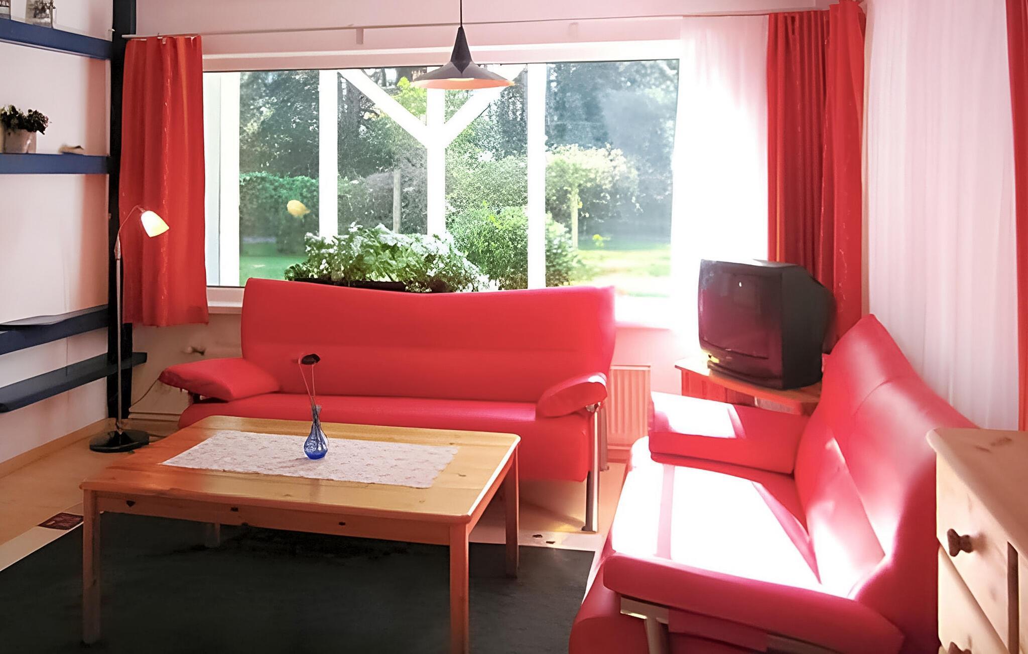 Die Fewo befindet sich im Erdgeschoss. Sie ist ausgestattet mit: Wohnraum (Polstermöbel mit Schlaffunktion, SAT-TV, Radio), Schlafraum (Doppelbett), Küche (Essplatz, Ceran-Kochfeld, Kühlschrank, Spülmaschine), DU/WC, Zentralheizung.