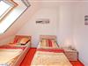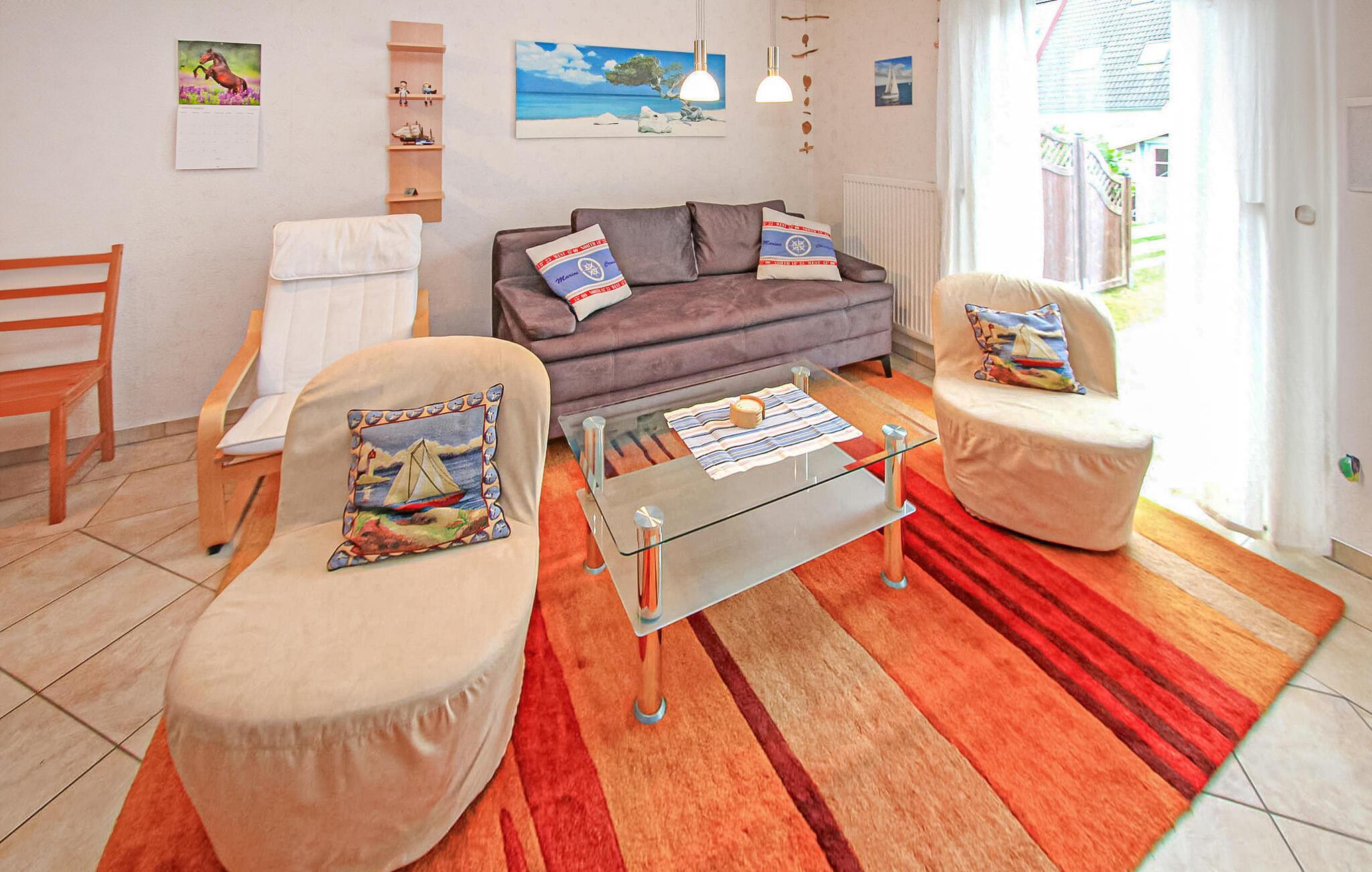 Das Ferienhaus (Reihenhaus) liegt auf einem 500 qm großen Grundstück innerhalb einer Ferienhaussiedlung in ruhiger Ortsrandlage. Eine Bademöglichkeit gibt es am Bodstedter Bodden in ca. 500 m Entfernung. Der Ostseestrand (Ostseebad Zingst) ist ca. 7 km entfernt. Das Ferienhaus erstreckt sich über 3 Wohnebenen. Im Erdgeschoss befindet sich ein Wohnzimmer (Polstermöbel, Flachbild-TV, Radio, Kamin), mit offener Küchenzeile (Elektroherd mit Backofen, Kühlschrank, Geschirrspüler, Mikrowelle, Essecke, diverse Küchengeräte) und ein Badezimmer mit Dusche/WC Im 1. Stock befinden sich 2 Schlafzimmer (1 x Doppelbett, Kinderbett, 1 x 2 Einzelbetten, Durchgangsraum zum Schlafboden). Im 2. Stock/Dachgeschoss (Zugang über steile Treppe im Schlafzimmer 2) befindet sich ein Schlafboden mit 3 Liegen.