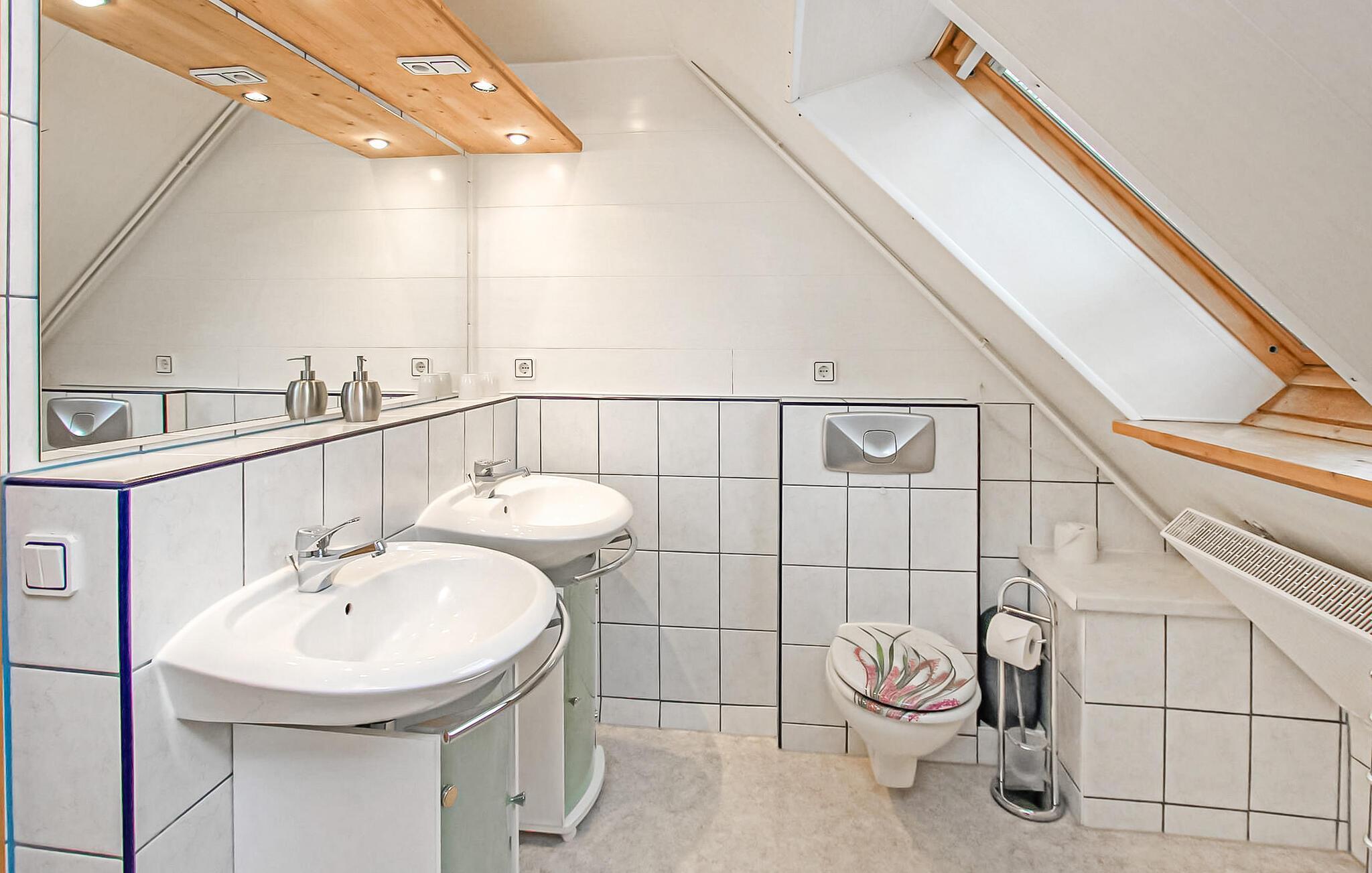 Die 75 qm große Ferienwohnung für 4 Personen ist ausgestattet mit einem Wohnbereich (Polstermöbel, Flachbild-TV), einer offenen Küchenzeile (E-Herd mit Backofen, Kühlschrank mit Tiefkühlteil, Spülmaschine, div. Küchengeräte), einem Schlafraum mit 2 Einzelbetten und einem Bad mit Badewanne und Dusche. Im Dachgeschoss (Zugang über steile Raumspartreppe) befindet sich ein weiterer Schlafraum (Doppelbett) und ein zusätzliches WC.