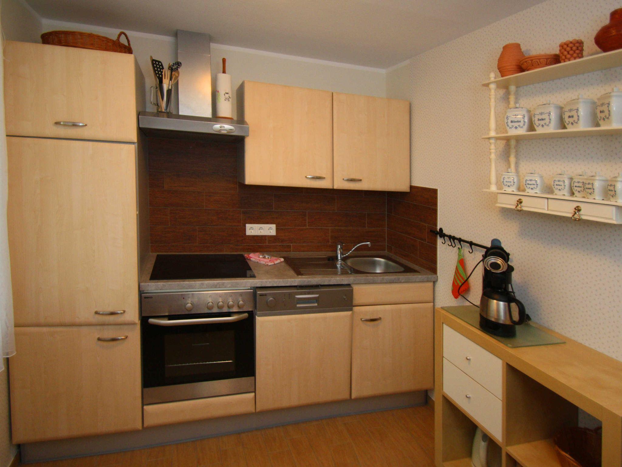 Zur weiteren komfortablen Ausstattung mit hellen Massivholzmöbeln gehören ein Wohnzimmer mit Sat-TV, Radio, Couch, Sitzmöbeln, Einbauküche (Backofen, Cerankochfeld, Geschirrspüler, Kühlschrank ), Essecke, Kaffeemaschine, Kühl-/Gefrierschrank ect..