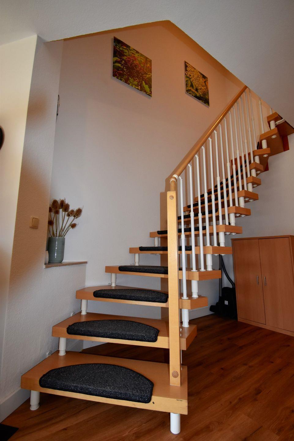 Im offen gestalteten Erdgeschoss lädt der helle Wohnbereich mit Sofaecke und Kamin zu entspannten Stunden ein. Durch bodentiefe Fenster gelangen Sie auf die sonnige Westterrasse – perfekt, um den Tag bei warmem Abendlicht ausklingen zu lassen. Die angrenzende Landhausküche ist vollständig ausgestattet und bietet alles, was Sie für gemeinsame Kochmomente brauchen. Ein kleines Duschbad sorgt auf dieser Ebene für zusätzlichen Komfort.