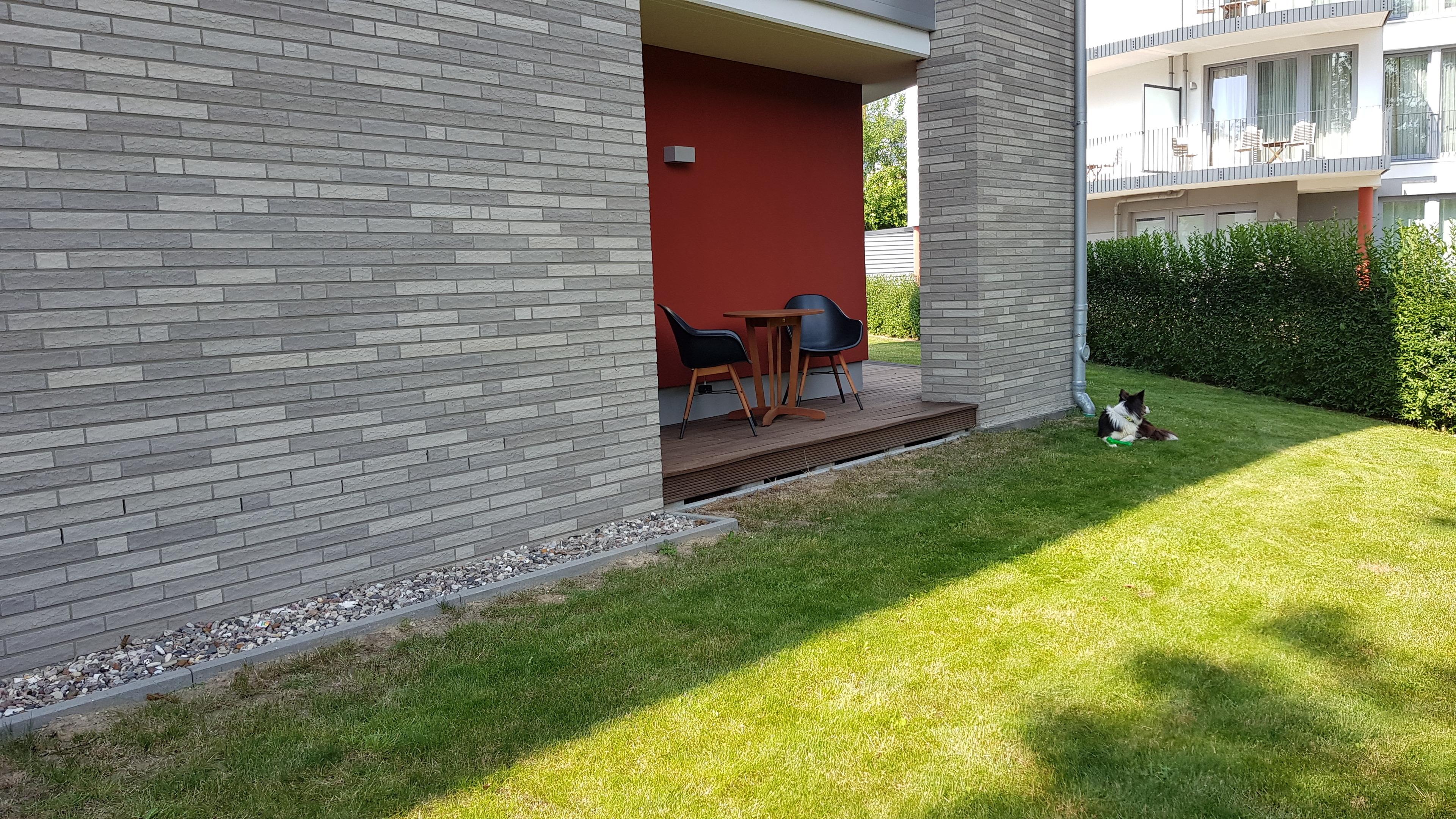 Moderne Ferienwohnung in Lauterbach nahe Hafen und Strand mit zwei Terrassen und viel Grün, ideal für Aktiv- und Strandurlaub.