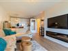 WOHNEN // Wohnraum mit Essbereich, Sitzgarnitur mit bequemer Sofalandschaft (mit Schlaffunktion), Esstisch, SMART-TV, Radio, überdachter Balkon ++