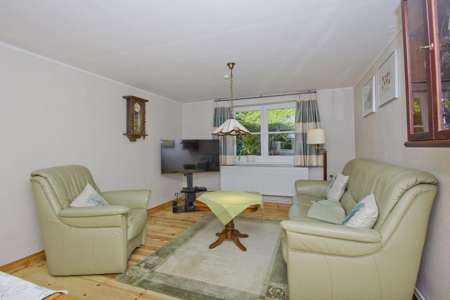 WOHNEN // Wohnraum mit Essbereich, Sitzgarnitur mit bequemer Couch, Flachbild-TV (Kabel), Radio, CD-Player ++