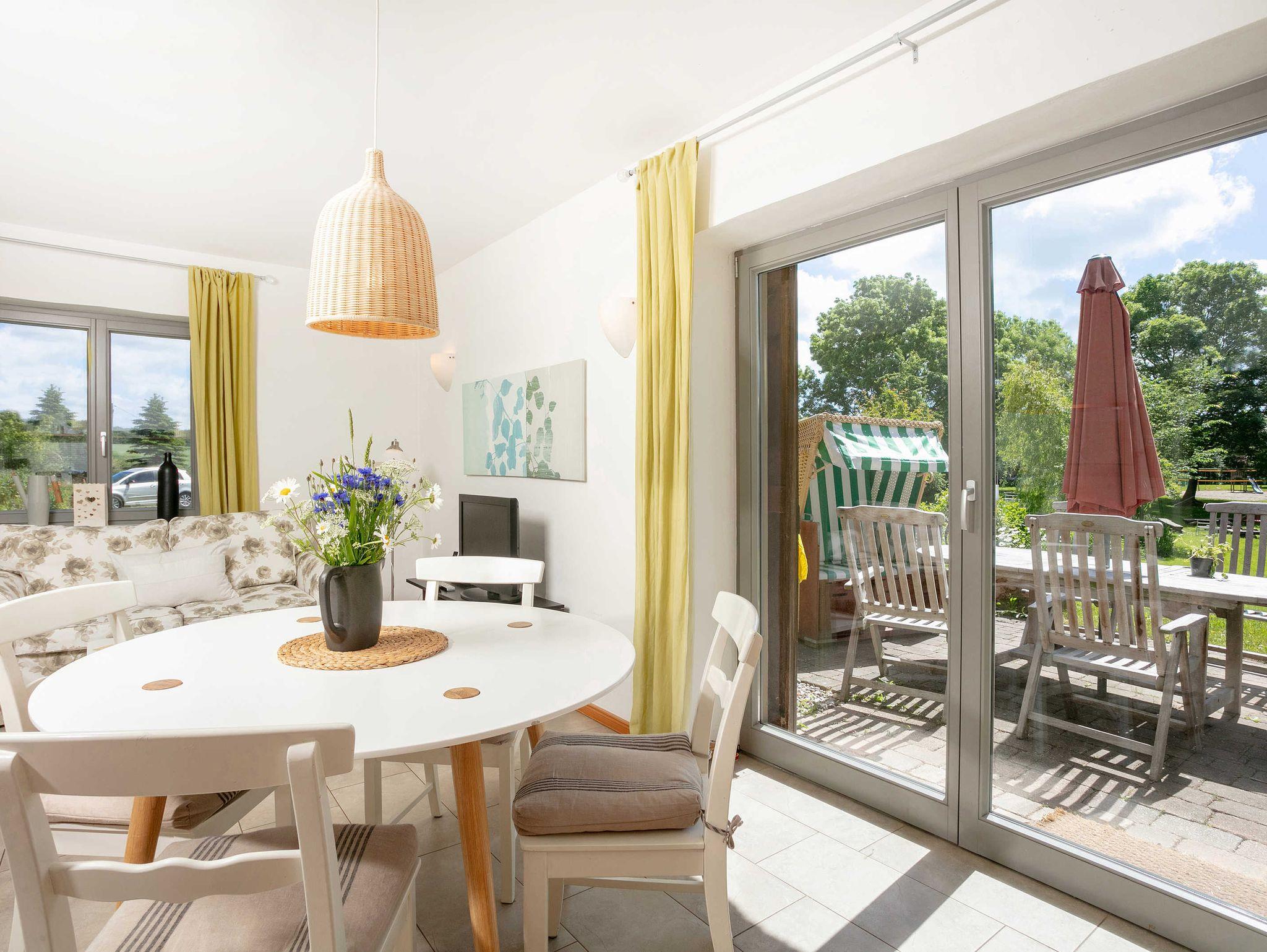 Gemütliche Ferienwohnung Morgentau im reetgedeckten Sonnenhaus mit Terrasse in ruhiger Lage bei Putbus.