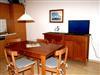 2 Raum Apartement mit Terrasse , 1,80m x 2 Doppelbett im Schlafzimmer und Schlafcouch im Wohnzimmer sowie einer gut ausgestatteten Küchenzeile mit Geschirrspüler und Backofen . Esstisch für 4 Personen. Kaffemaschine und Toaster sind vorhanden. Erstausstattung Bettwäsche und Handtücher vorhanden. Kinderbett und Hochstuhl für die Kleinsten bitte vorbestellen . Für Ihr Auto ist ein Garagenplatz vorgesehen. Max. Höhe 1,50m.
