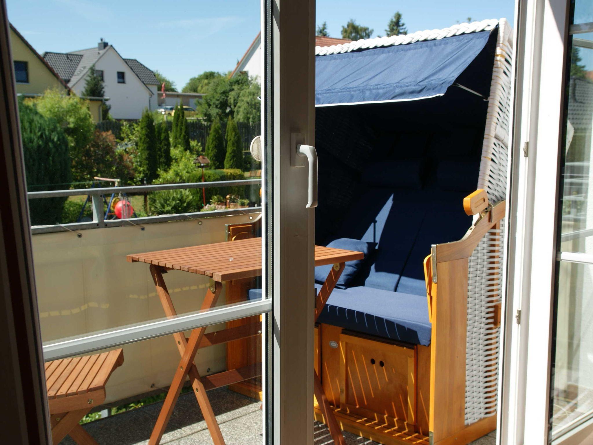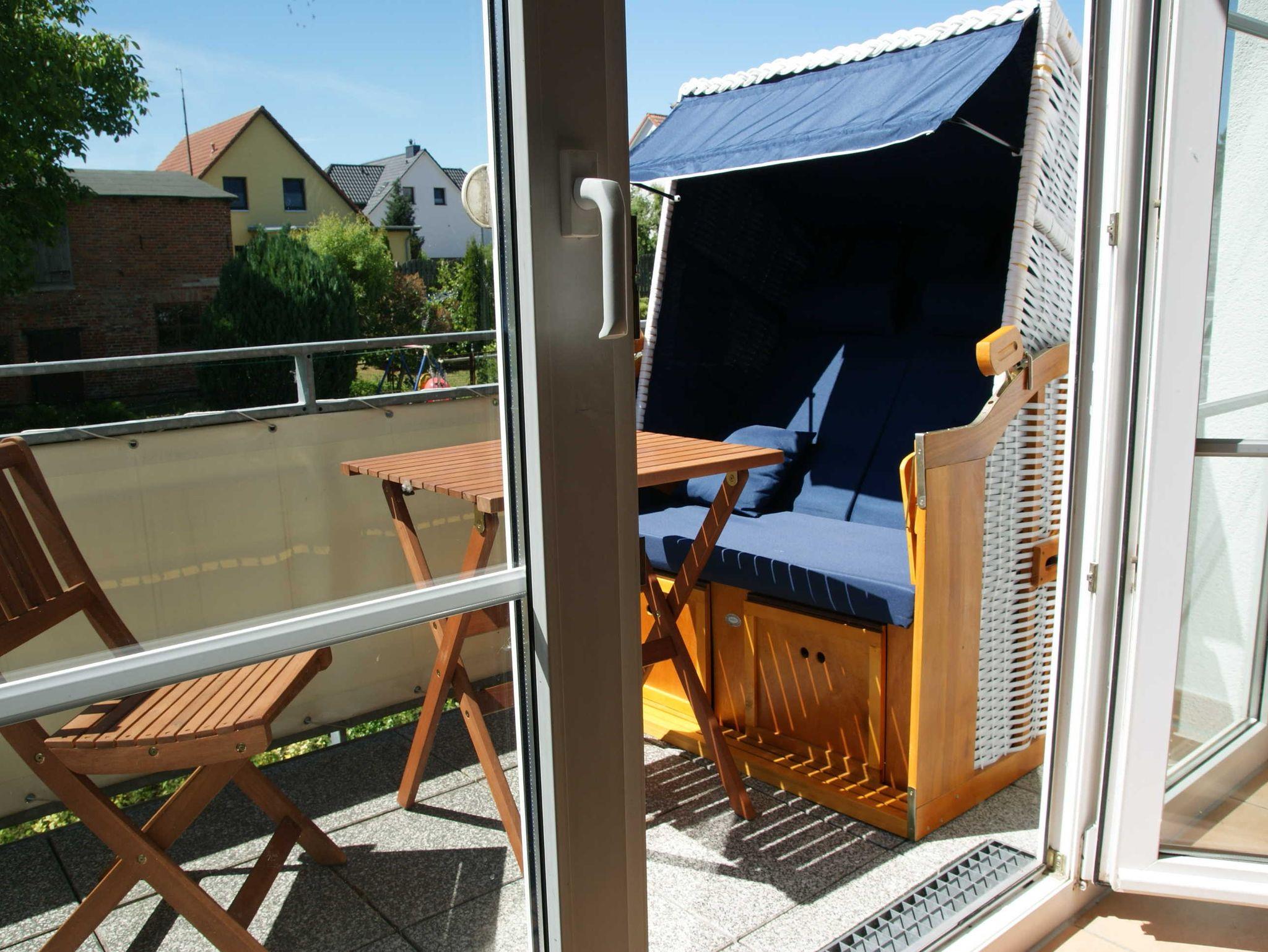 Charmantes 2-Raum-Apartment mit Balkon und Strandkorb am Hafen von Lauterbach, nahe Naturschutzinsel Vilm.