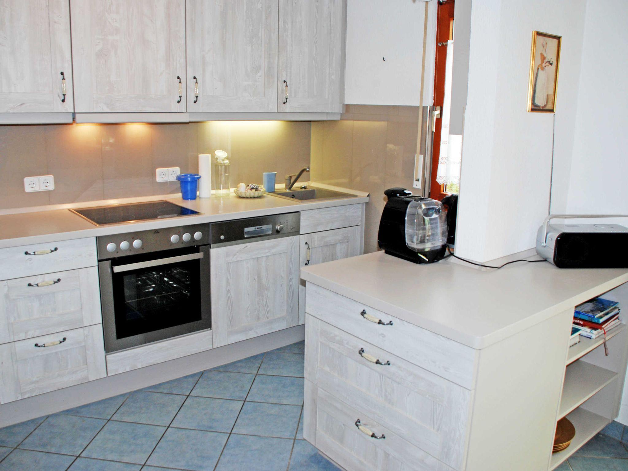 Unsere Ferienwohnung 03 bietet für max. 4 Erwachsene und zwei Kinder Platz. Die liebevoll und komfortabel eingerichtete Ferienwohnung hat einen eigenen Eingangsbereich und liegt im Erdgeschoss. Im Wohnraum steht eine Sitzgruppe mit einer neuen, bequemen Schlafcouch für zwei Gäste, Tisch und zweiter Couch und ein Schrank mit SAT-TV Gerät und Radio. Direkt neben der zum Wohnraum offenen Küche, die mit Backofen, Mikrowelle, Geschirrspüler usw. komplett ausgestattet ist, befindet sich ein großer Abstellraum. Außerdem gibt es ein Bad mit Dusche/WC und Tageslichtfenster.