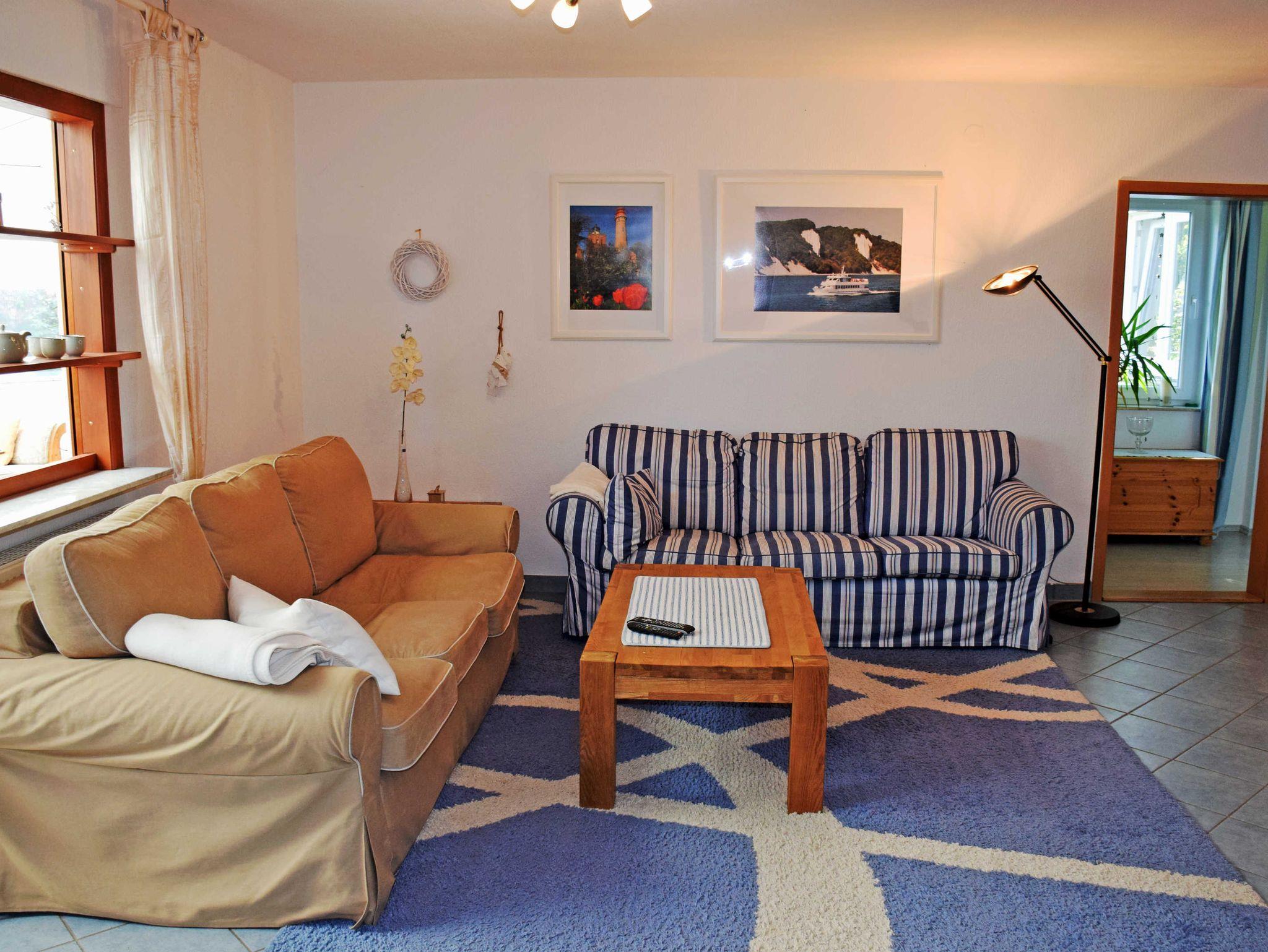Die herrliche Natur zum Wandern und Rad fahren liegt quasi vor der Haustür. Und - bis zum Natur-Badestand am Greifswalder Bodden sind es auch nur etwa 1,5 Kilometer. Am Lauterbacher Hafen befinden sich zahlreiche Restaurants, in denen man noch zu zivilen Preisen speisen kann. Bäcker und Supermarkt erreichen Sie bequem zu Fuß (ca. 8 Min.). Bei Ihrer Anreise liegen frische Handtücher bereit und die Betten sind selbstverständlich bereits mit Bettwäsche bezogen (außer Aufbettung). Ausreichend Parkplätze befinden sich direkt am Haus. Für Ihre mitgebrachten Fahrräder steht eine Unterstellmöglichkeit zur Verfügung. Bis zur Bus-Haltestelle des öffentlichen Nahverkehrs sind es nur ca. 300 Meter. Am Lauterbacher Hafen, den Sie zu Fuß in ca. 10 Minuten erreichen, befindet sich zudem ein Bahnhof mit Anschluss an das gesamte deutsche Bahnnetz und die Endhaltestelle der Kleinbahn „Rasender Roland“. Vom Hafen sind auch Schiffsverbindungen (auch mit Fahrradmitnahme) in die Ostseebäder Baabe und Sellin (Saison) möglich. Einem Urlaub ohne Auto steht also nichts im Wege.