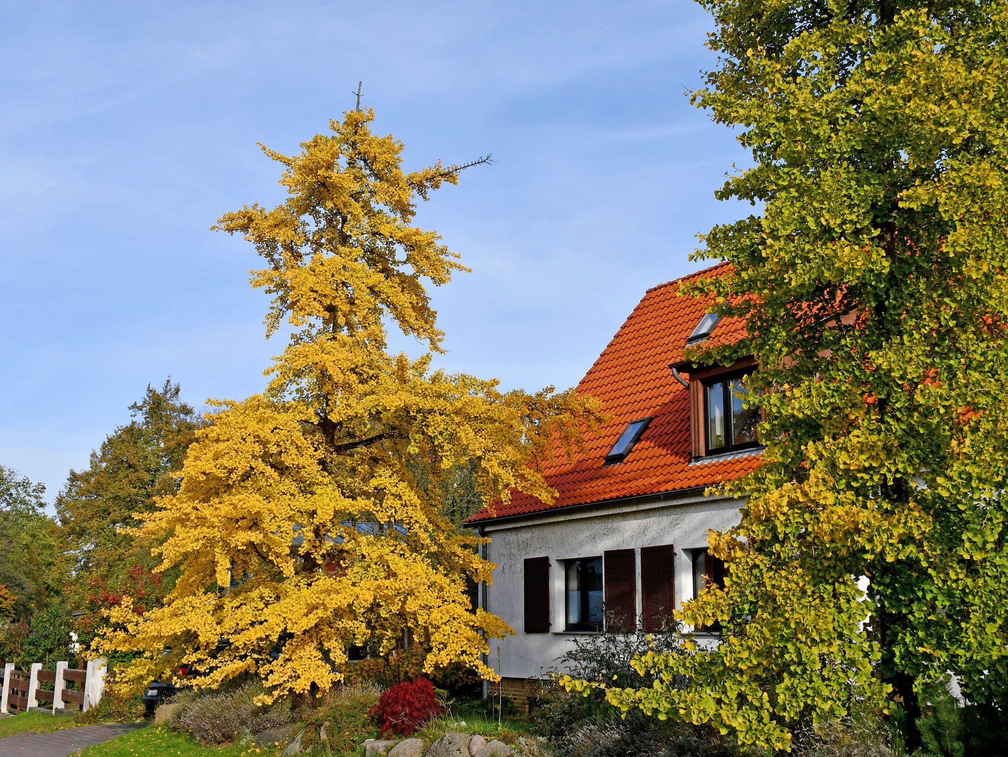 Unser Garten ist als Naturgarten zertifiziert. An der Einfahrt stehen zwei imposante Gingobäume!