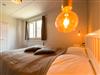 Ein Schlafraum mit Doppelbett und ein Wohnraum mit Aufbettung für zwei Personen (Schlafcouch),