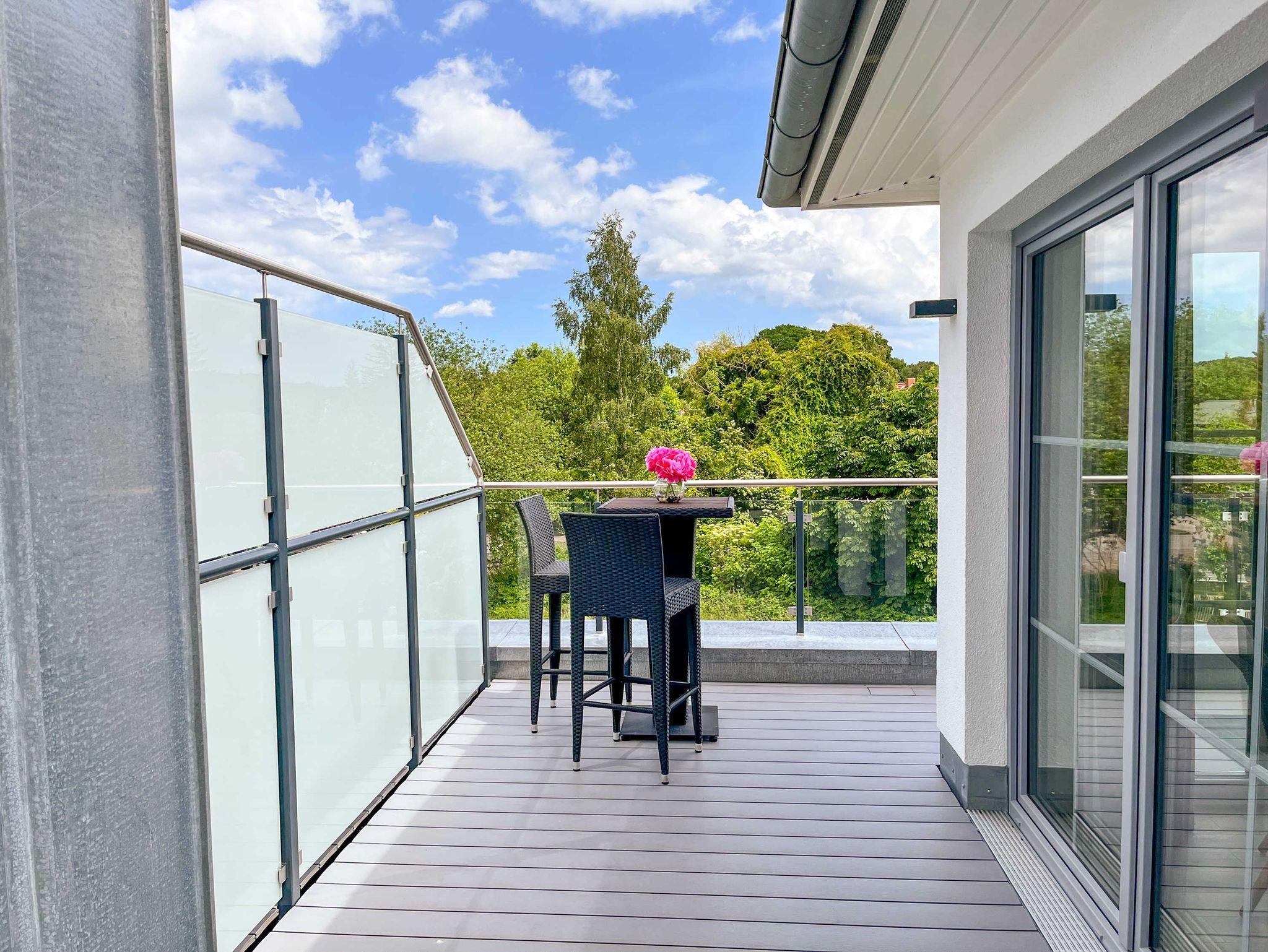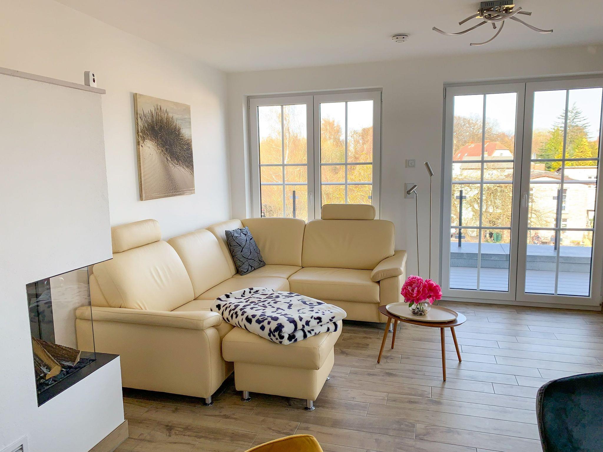 Modernes Penthouse mit Kamin und großer Dachterrasse, direkt am Yachthafen von Lauterbach auf Rügen.