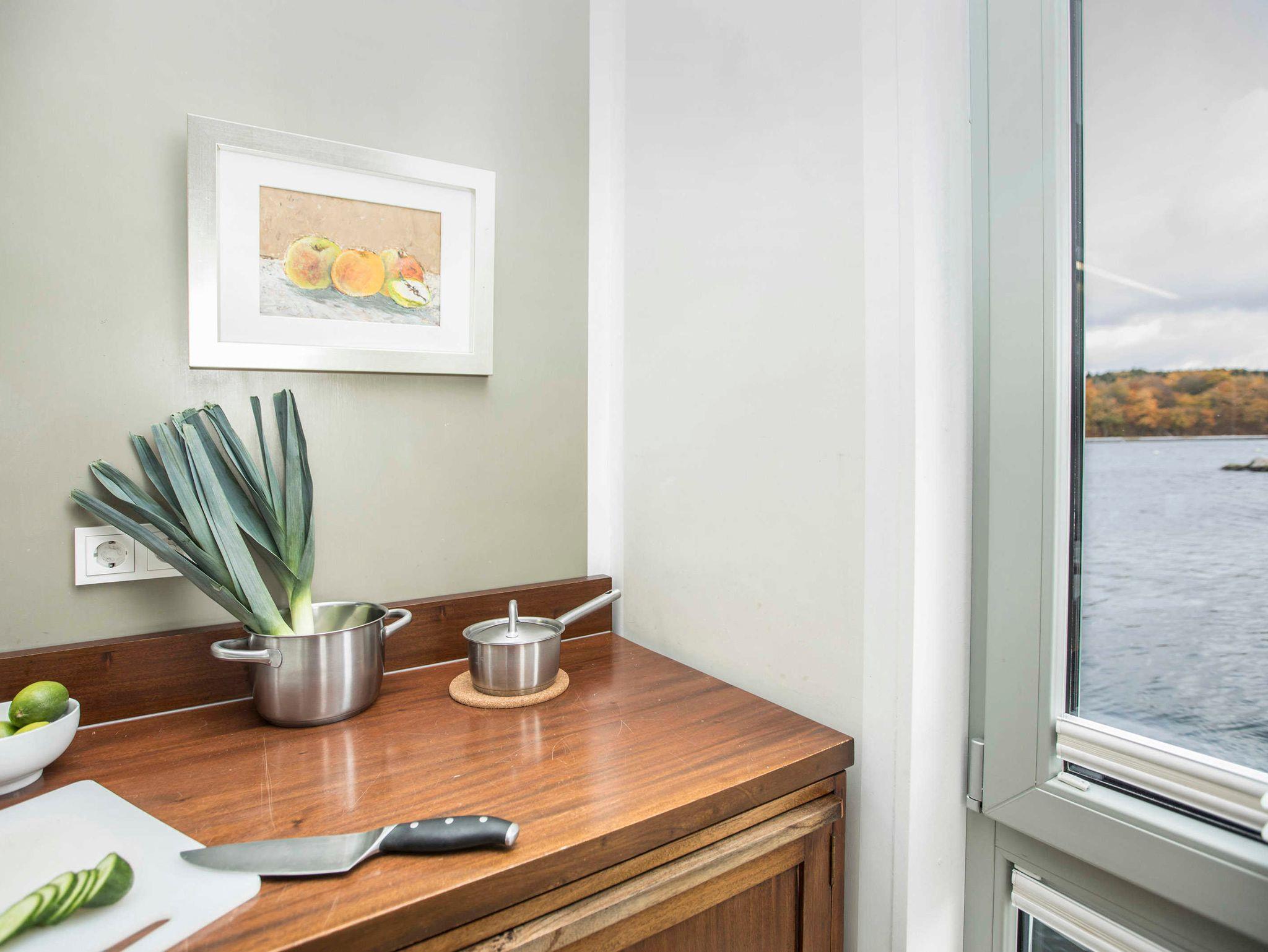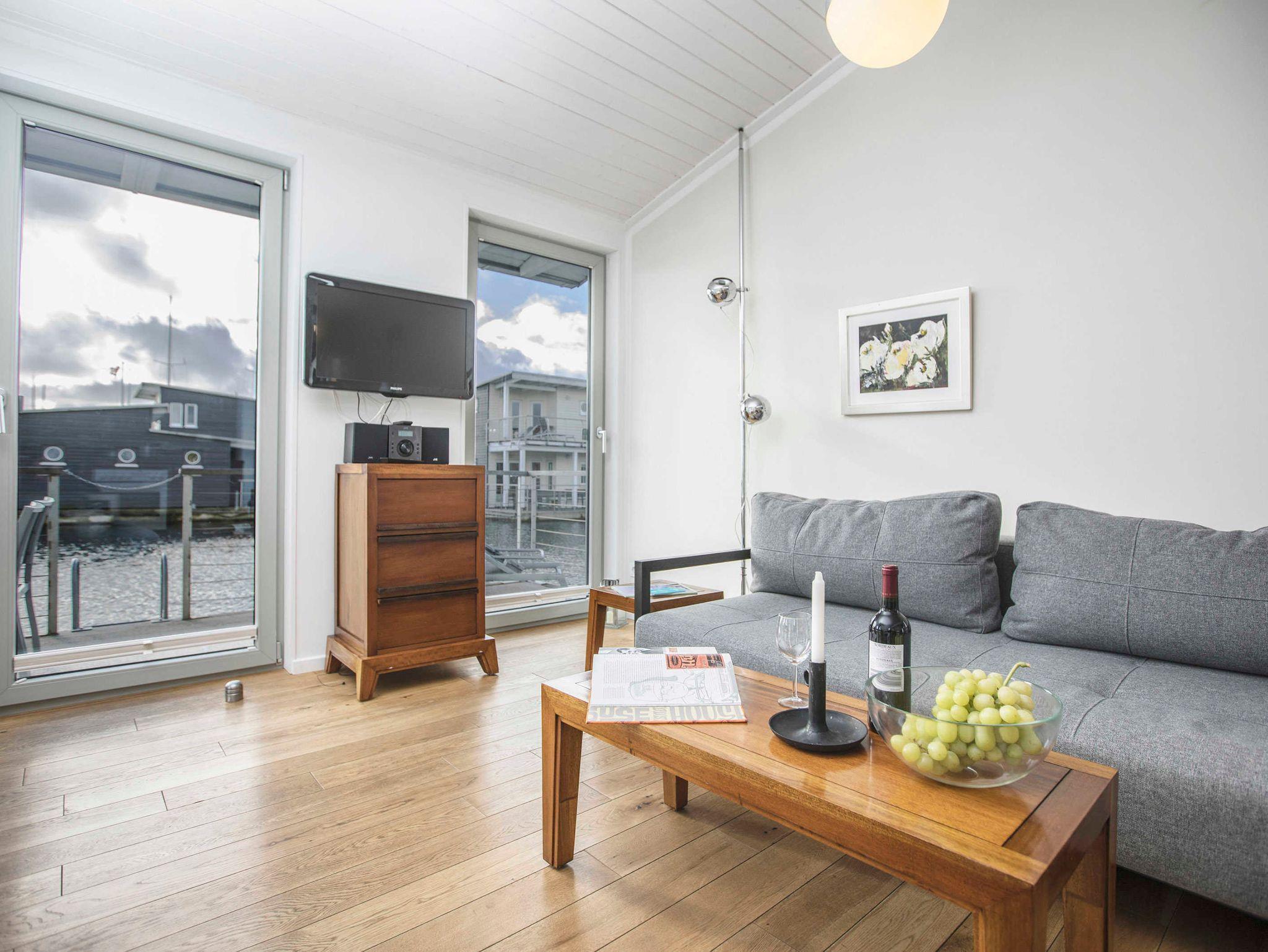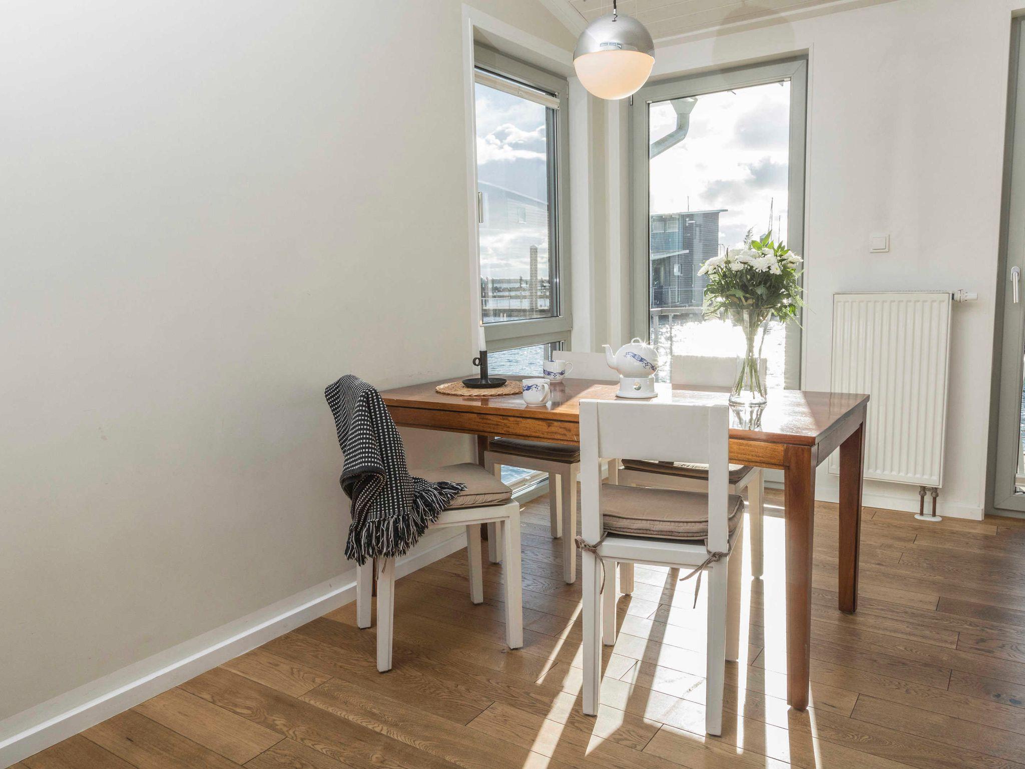 Entspannen Sie in einem schwimmenden Ferienhaus mit Terrasse, moderner Küche und vielfältigen Freizeitangeboten in Lauterbach bei Putbus.
