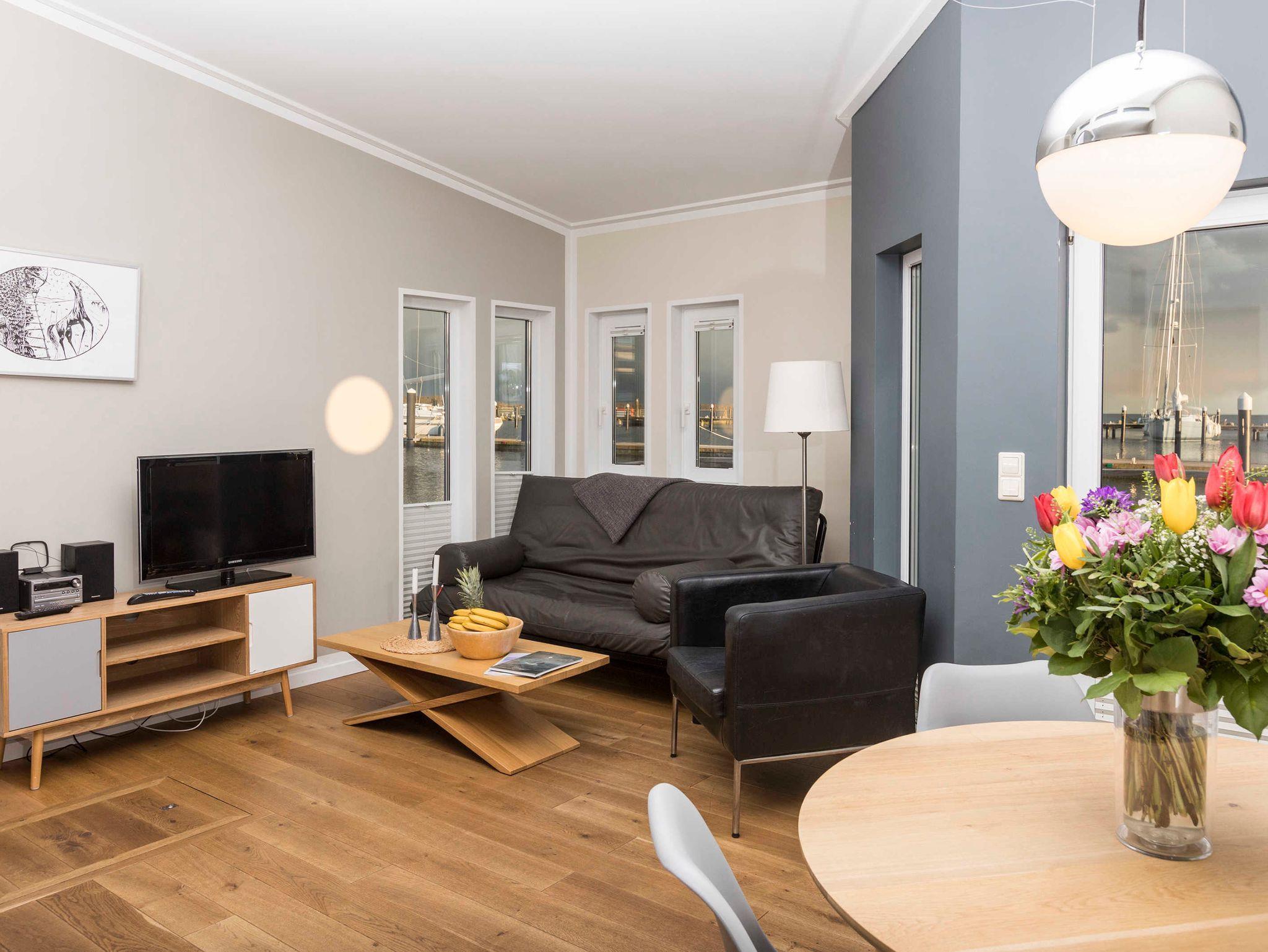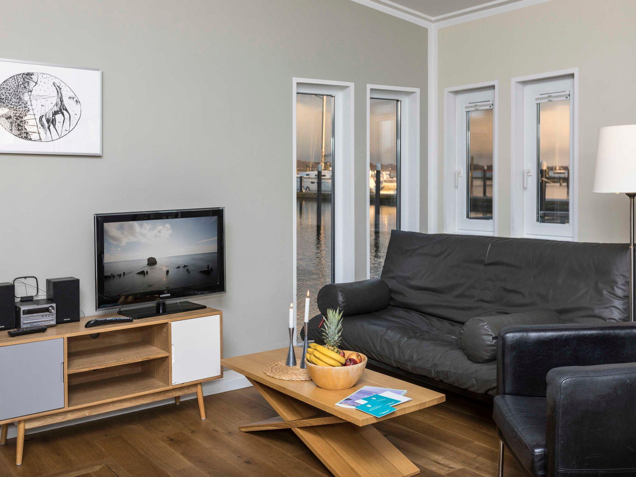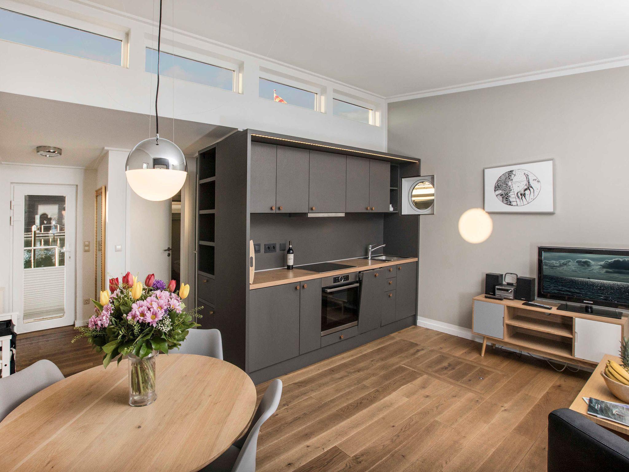 Entspannen Sie in einem schwimmenden Ferienhaus mit Terrasse, moderner Küche und vielfältigen Freizeitangeboten in Lauterbach bei Putbus.