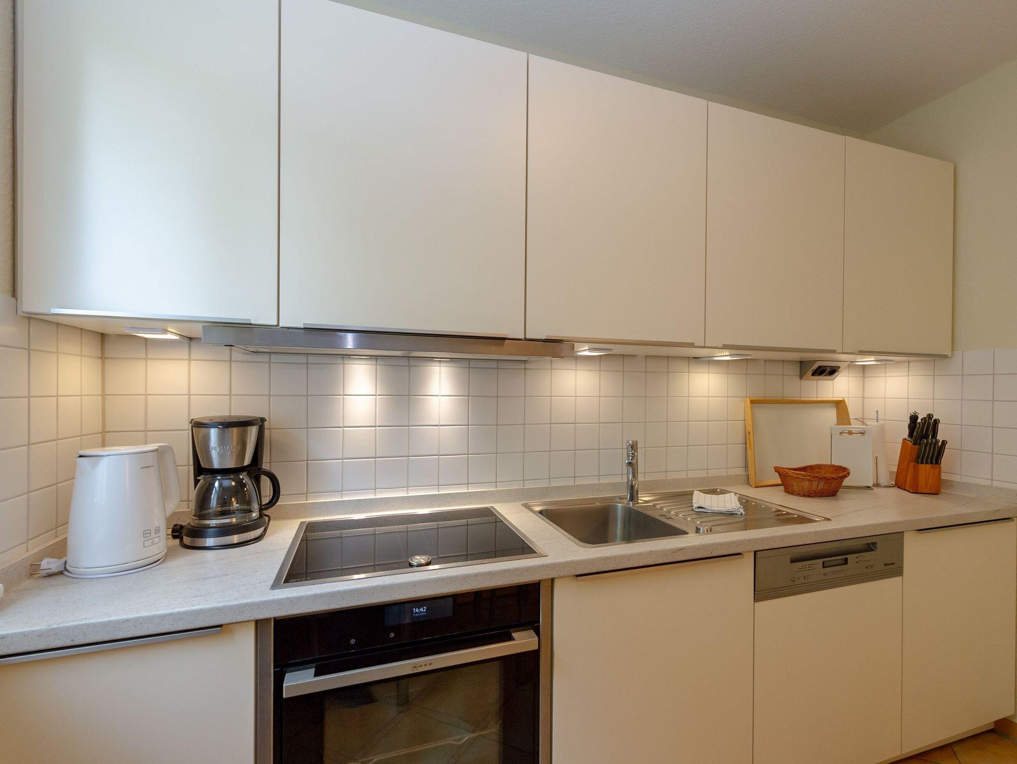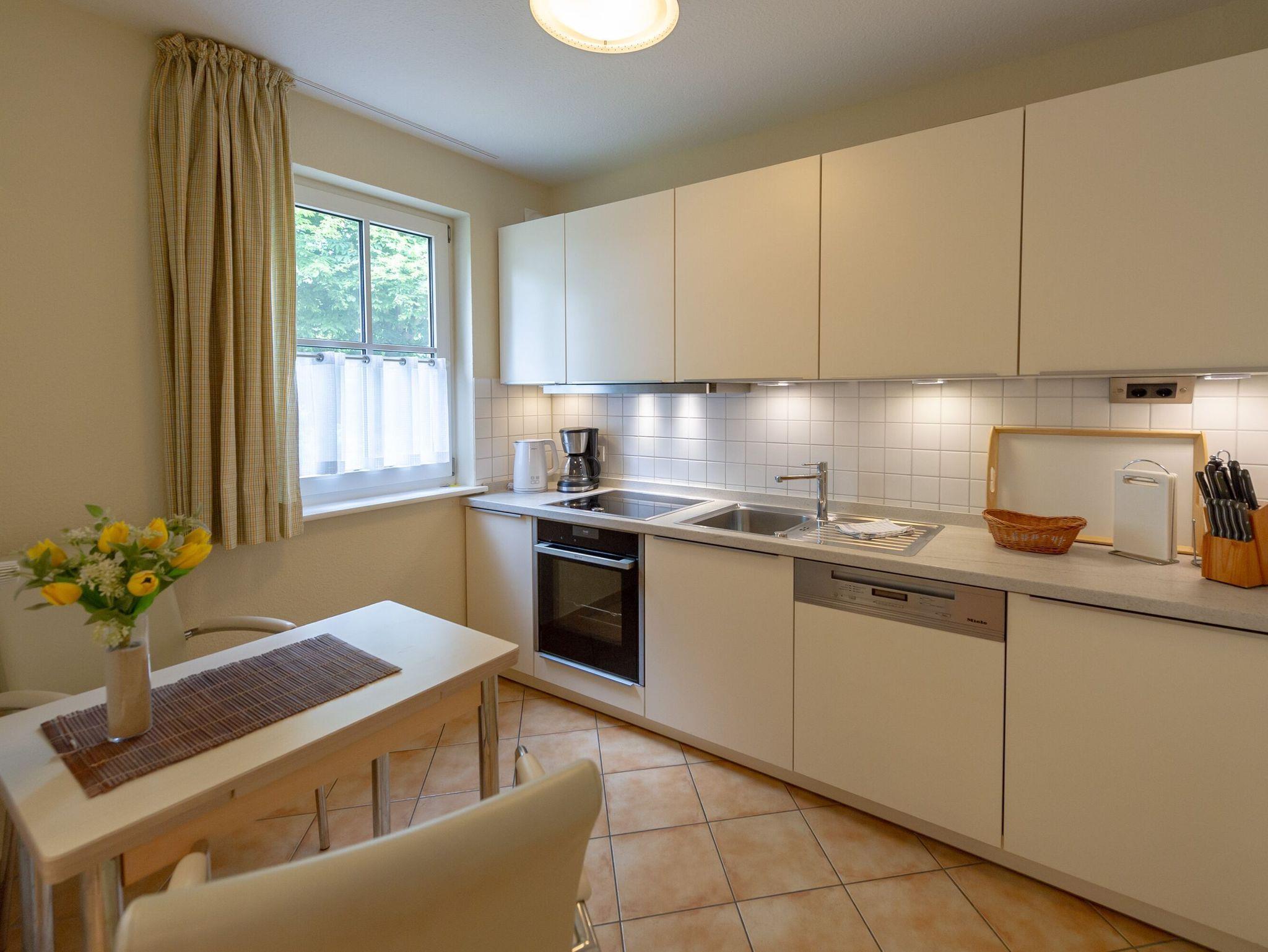 Das Wohnzimmer ist u.a. mit einem großen Flachbild-Fernseher, einer Stereoanlage mit CD-Player, einer Buchauswahl, einer ausklappbaren Schlafcouch für zwei Personen und einem zusätzlichen Schrankbett für eine Person möbliert. Die vom Wohnbereich optisch abgetrennte, sehr gut ausgestattete Küchenzeile enthält u.a. einen 4-Zonen-Ceranherd mit Backofen, eine Mikrowelle, einen Geschirrspüler sowie Kaffeemaschine, Wasserkocher und Toaster. Einen Bäcker für die frischen Frühstücksbrötchen und einen Supermarkt finden Sie direkt in Lauterbach.