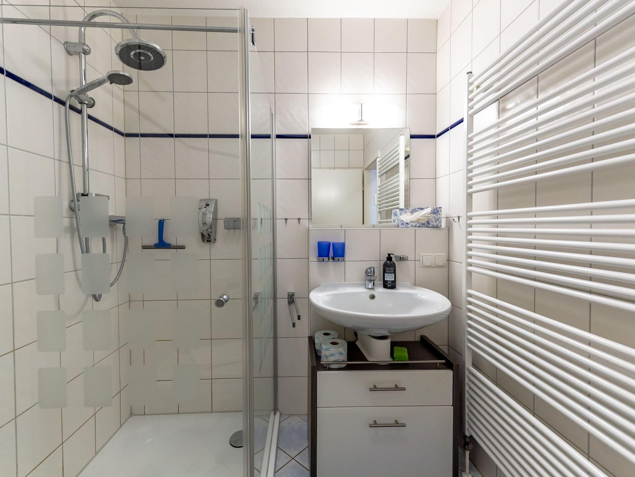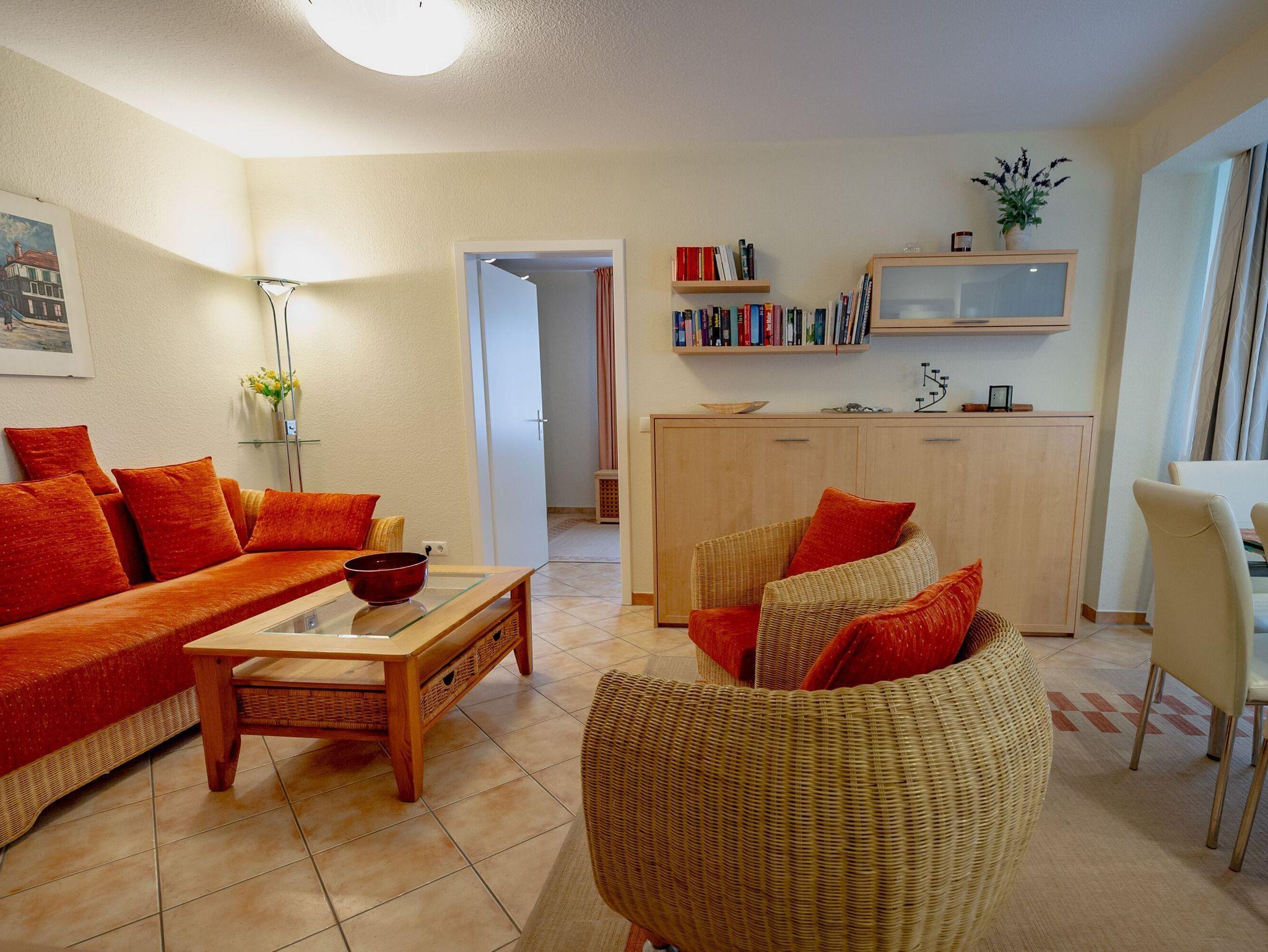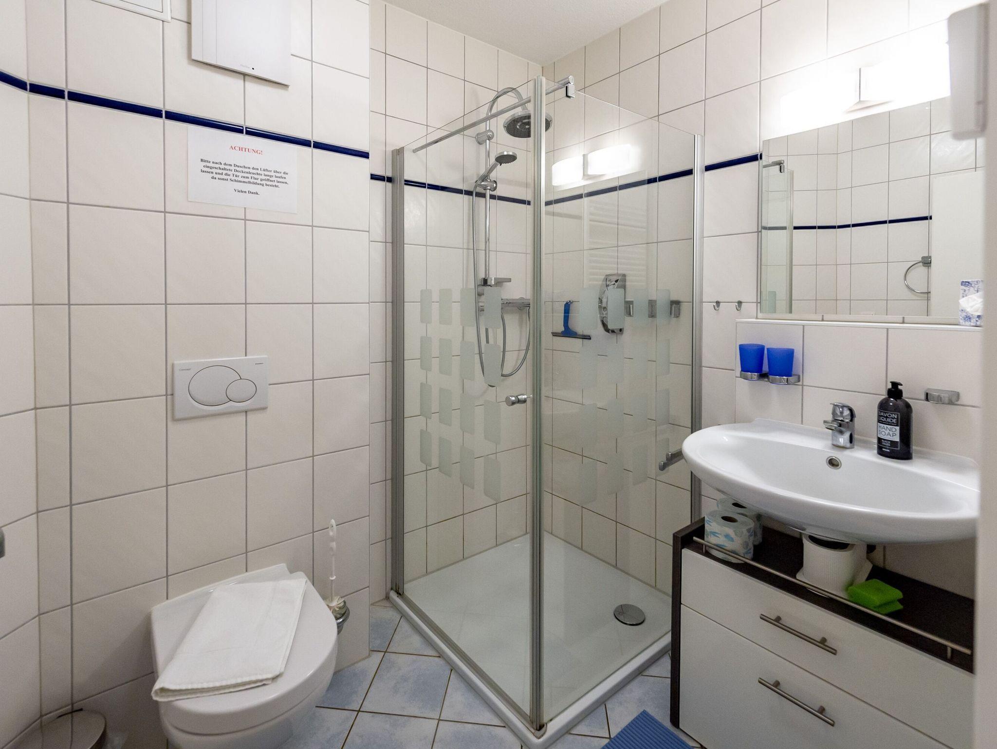 Im separaten Schlafzimmer verspricht ein gemütliches Doppelbett süße Träume. Der geräumige Kleiderschrank bietet Platz für Ihre Urlaubsgarderobe. Das geflieste Badezimmer Ihres Urlaubsdomizils ist mit Dusche/WC, einem beleuchteten Waschtisch, einem beheizbarem Handtuchtrockner und genügend Ablageflächen für Ihre Utensilien ausgestattet.