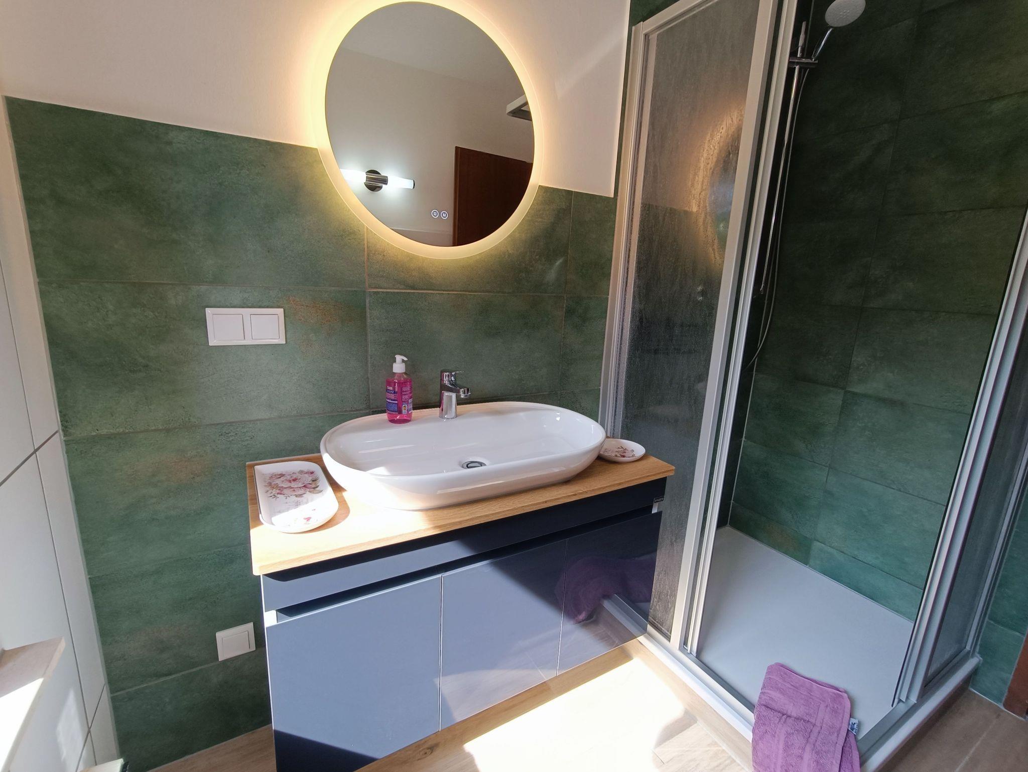 Das helle Bad ist mit Dusche/WC und Waschtisch ausgestattet und verfügt über Tageslicht.
