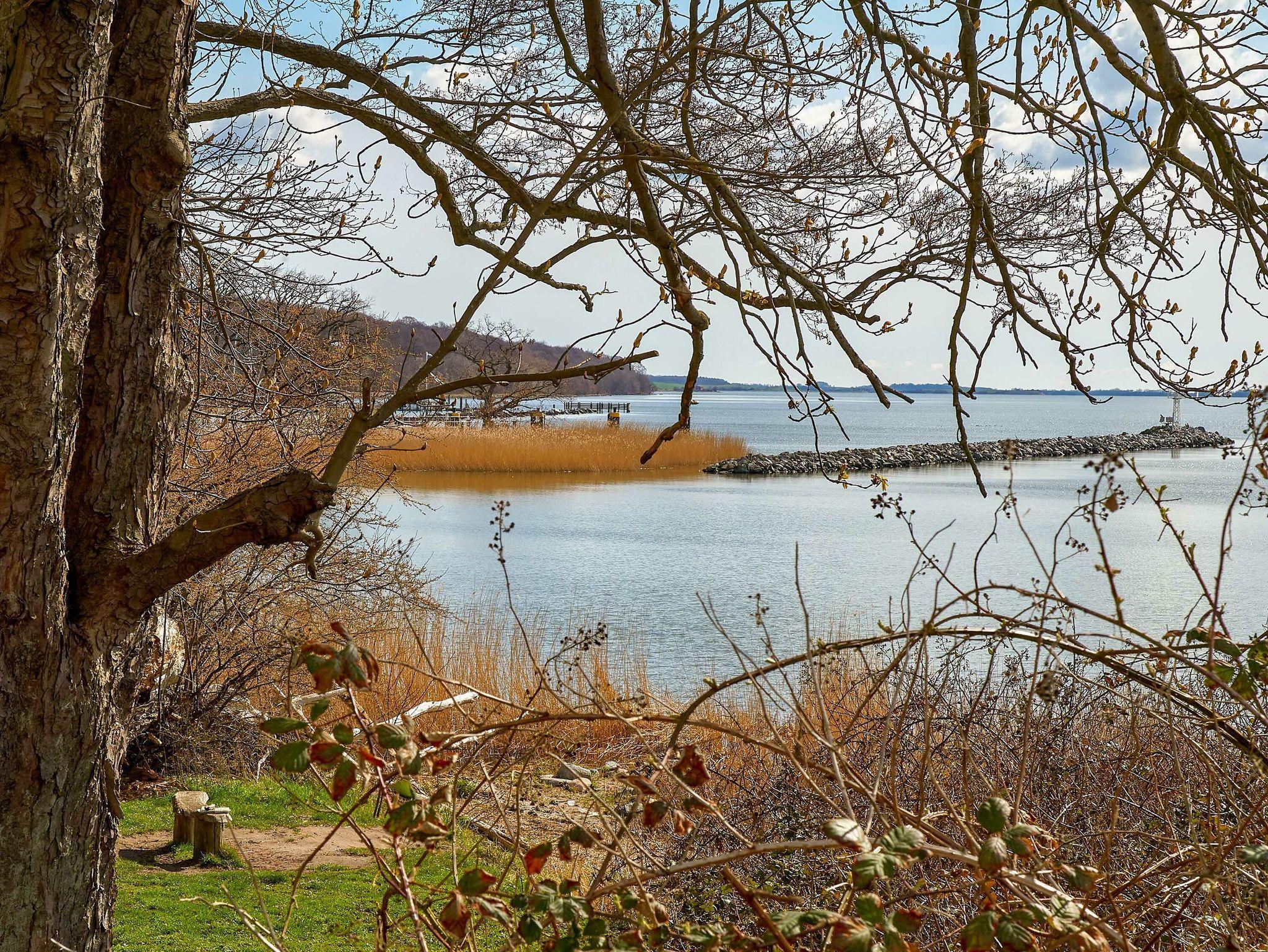 Die gut 30 m² große Hochterrasse ist zur Abendsonne ausgerichtet und von beiden Zimmern aus zugänglich. Von hier aus genießen Sie einen wunderbaren Blick über den Rügischen Bodden auf die Insel Vilm. In der Wohnung selbst stehen Ihnen ein Wohn- und ein Schlafzimmer mit jeweils seitlichem Wasserblick zur Verfügung.