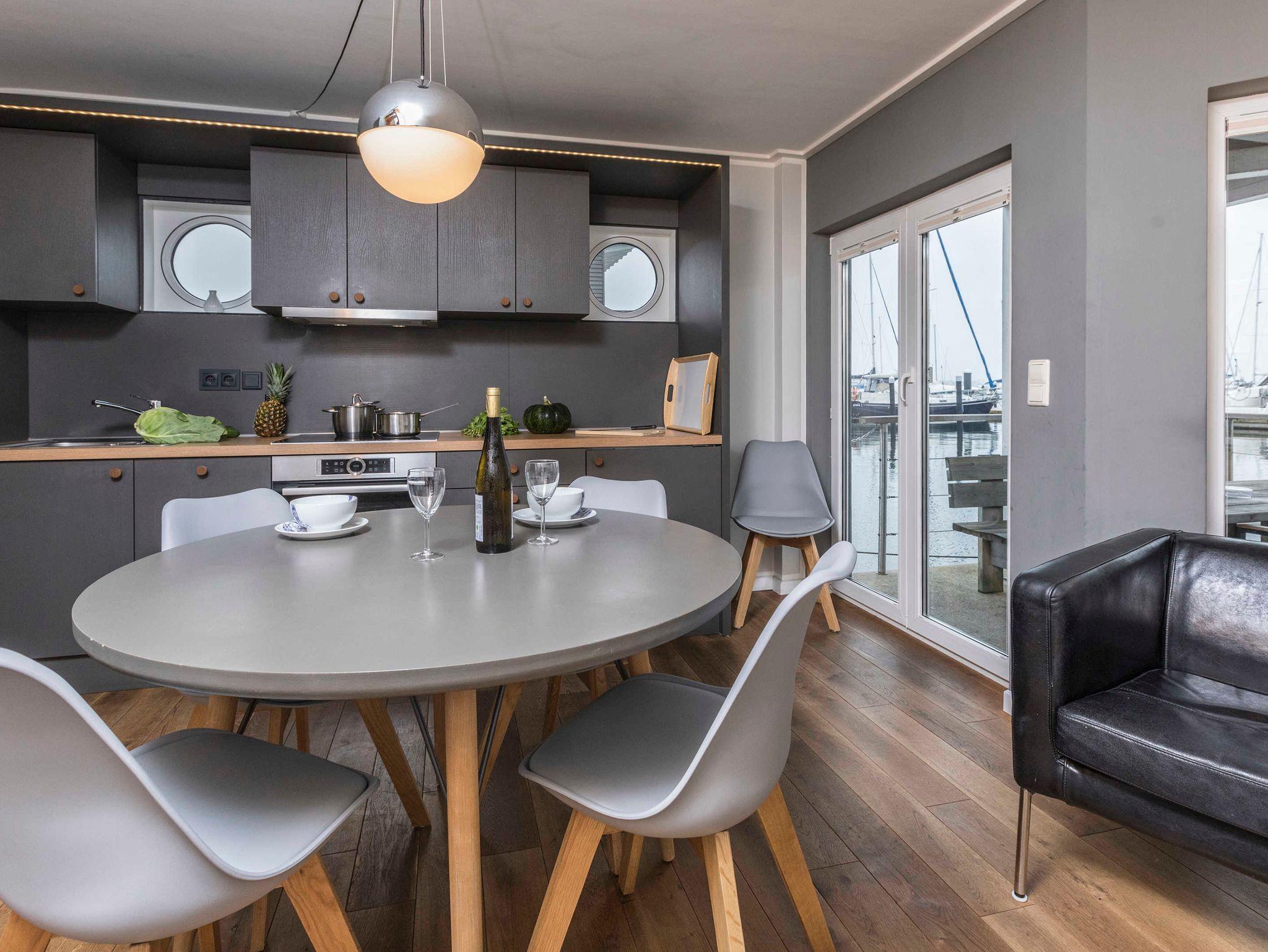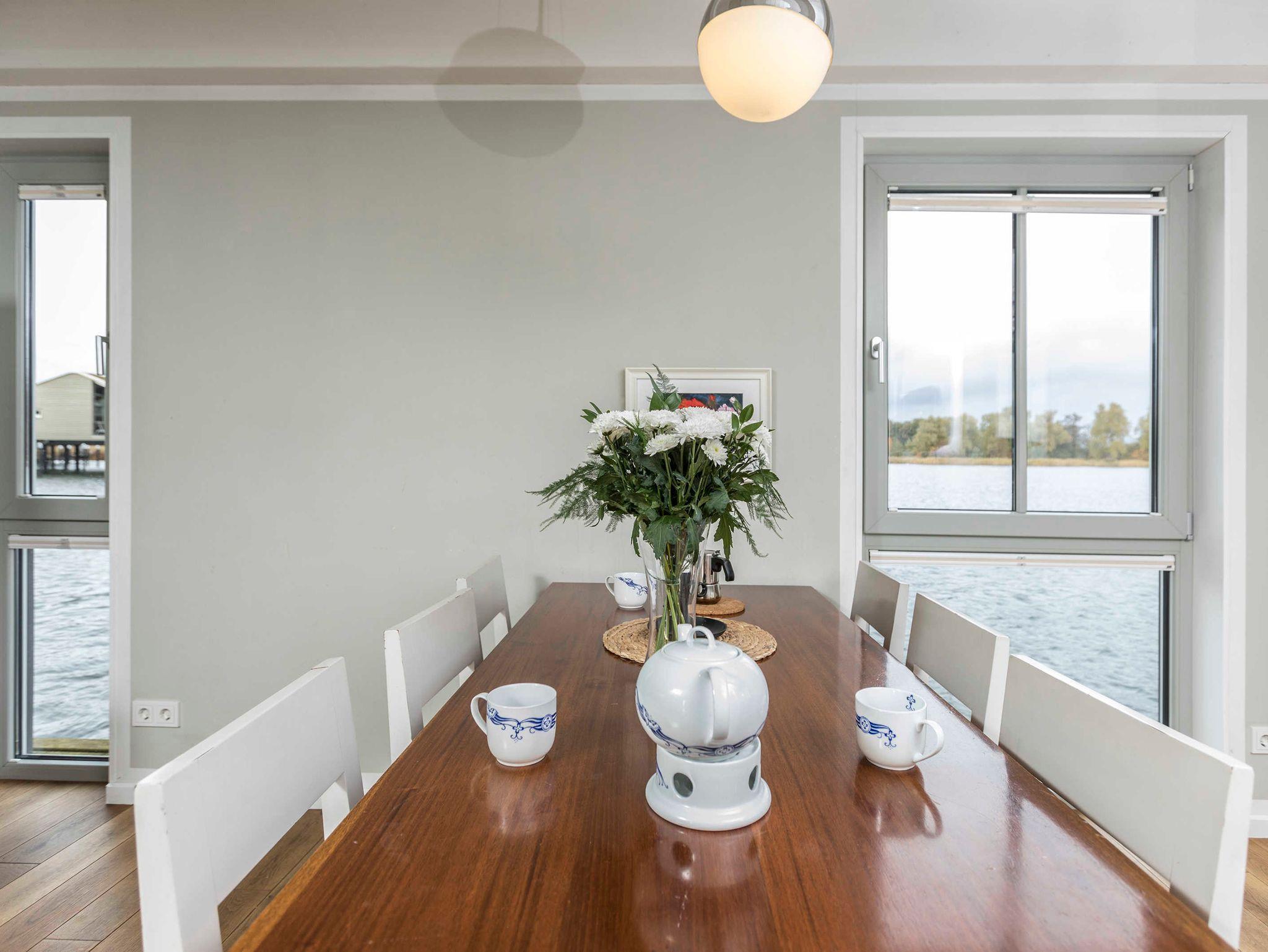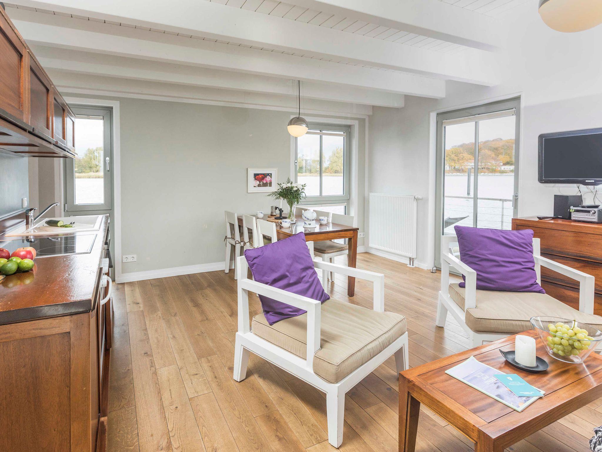 Genießen Sie Ruhe und Natur in einem schwimmenden Ferienhaus bei Lauterbach, ideal für Familien mit vielseitigen Freizeitangeboten.