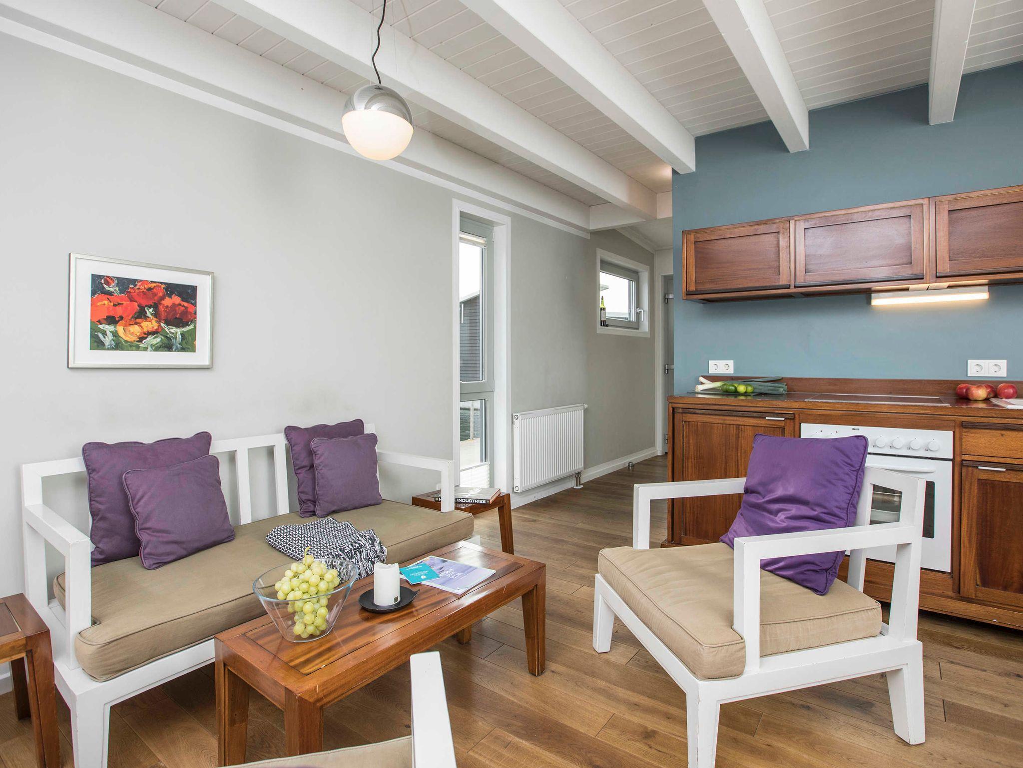 mit Etagenbett, Bad mit Dusche, Badeterrasse, Balkon und Liegeplatz | 72 m2 für 6 Pers.
