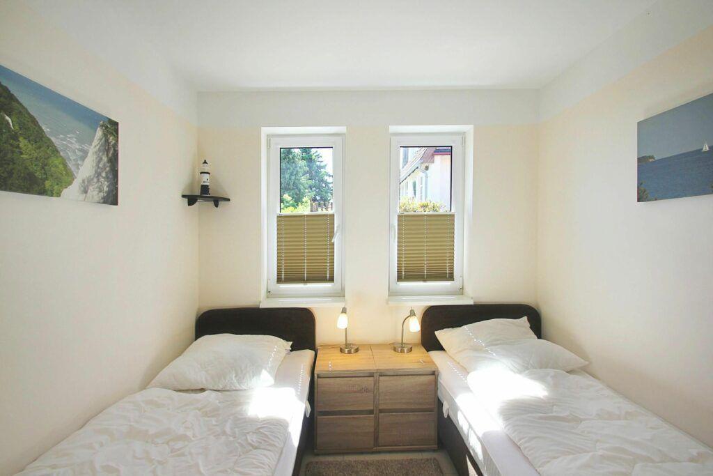 Zwei Schlafzimmer stehen Ihnen zur Verfügung, eines mit Doppelbett und eines mit zwei Einzelbetten. Das Tageslichtbad verfügt über eine bodengleiche Dusche und eine Waschmaschine.