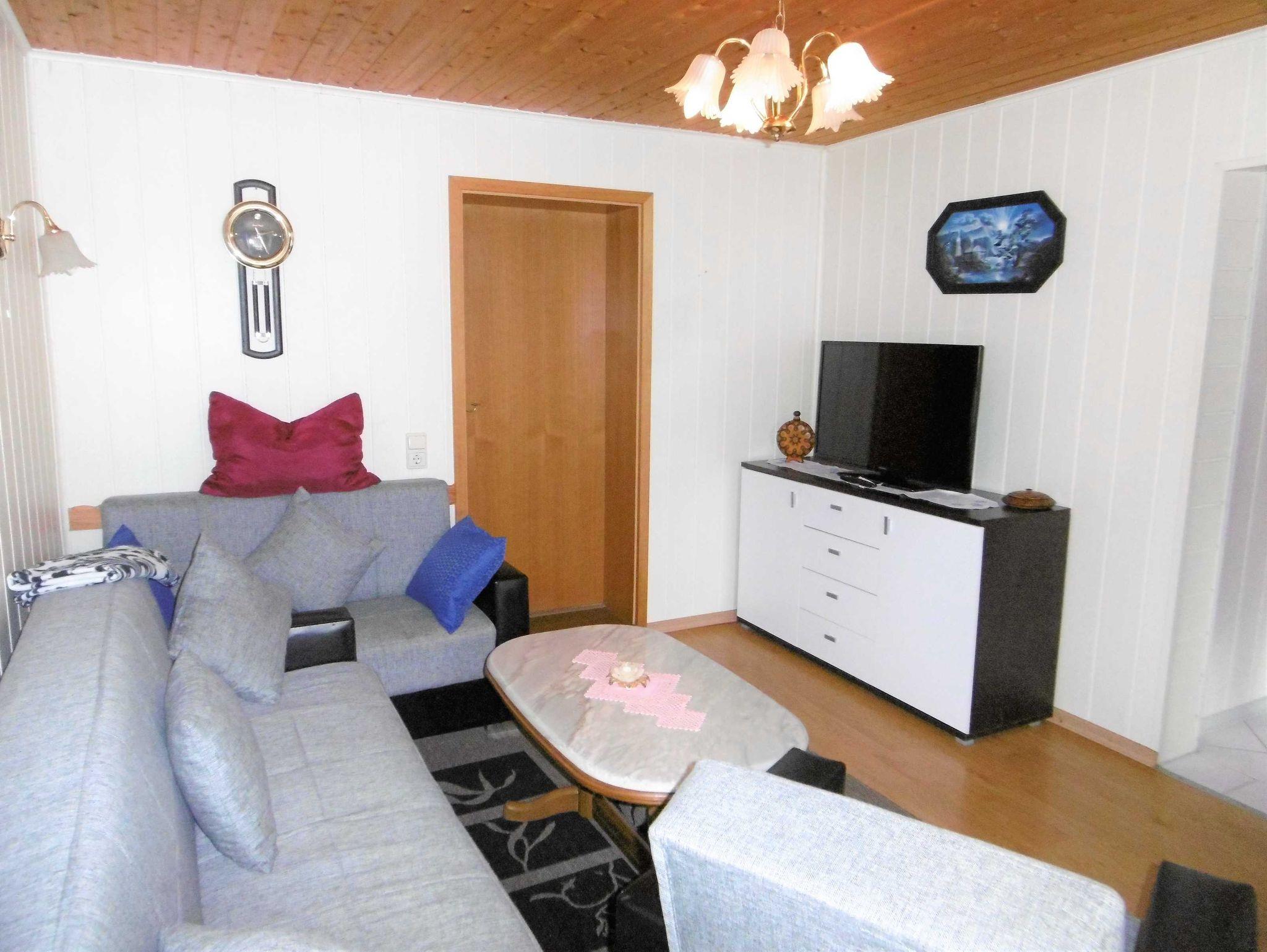 Die gemütlich eingerichtete Ferienwohnung besteht aus einem Wohnzimmer mit Sitzgruppe (im Notfall ist die Coutch ausklappbar) und einem Esstisch, TV . Eine kleine Küche mit allem was dazu gehört steht Ihnen genauso zur Verfügung wie das Duschbad und das Schlafzimmer mit Doppelbetten und zwei Einzelbetten. Auf dem Grundstück haben Sie die Möglichkeit zum Grillen.