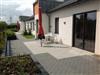 Im Eingangsbereich befindet sich die Garderobe sowie ein Gäste -WC.Zur linken Hand haben Sie den großen Wohn-Küchenbereich.Der Küchenbereich ist komplett ausgestattet. Der Esstisch mit sechs Stühlen lädt zu gemütlichen Frühstück ein oder Sie genießen es auf der teilweise überdachten Terrasse in gemütlichen Korbmöbeln. Ein Elektrogrill gehört zur Ausstattung.