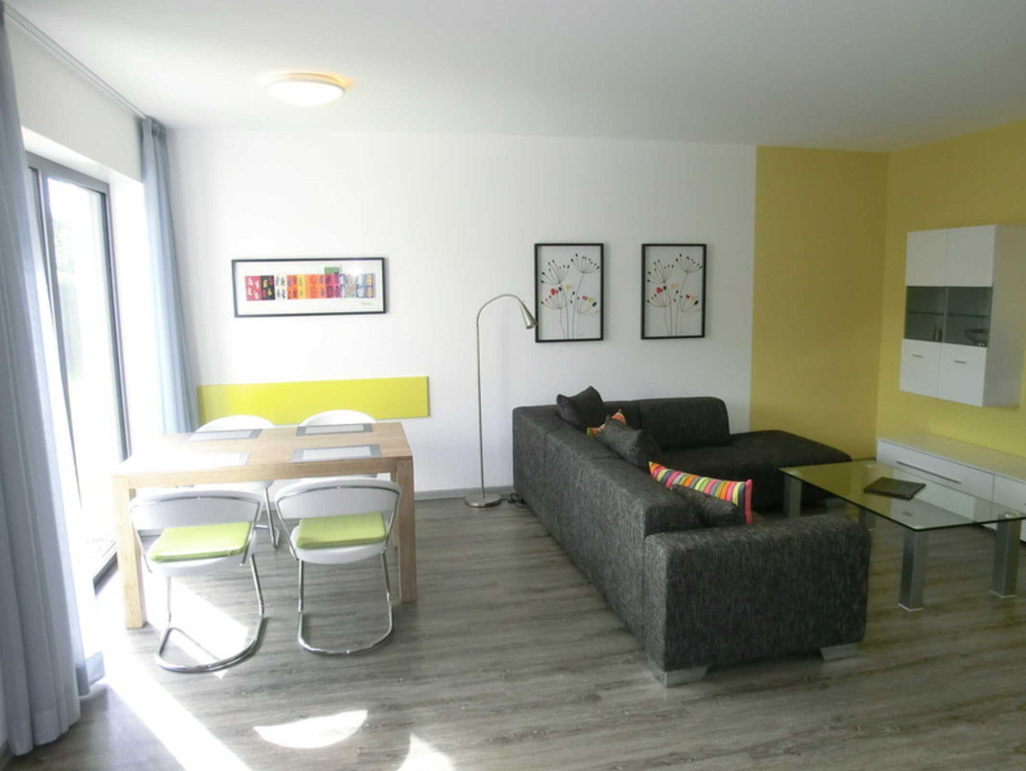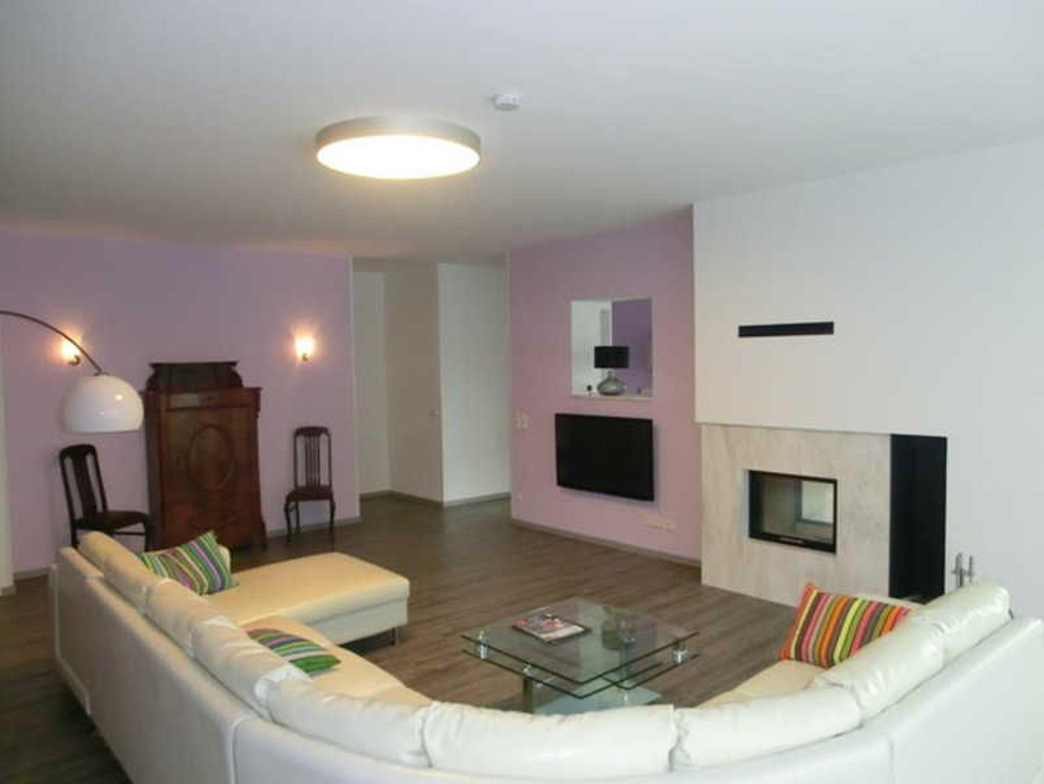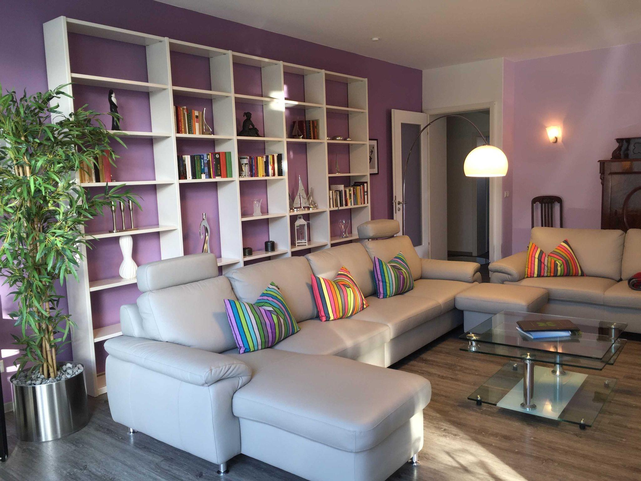 Der Wohnbereich mit einem großen Ecksofa und einem 127 Zoll Flachbildschirm mit DVD, Schreibsekretär und Bücherwand ist nur ein Highlight dieser Wohnung. Sie nutzen WLAN in der Wohnung kostenfrei.