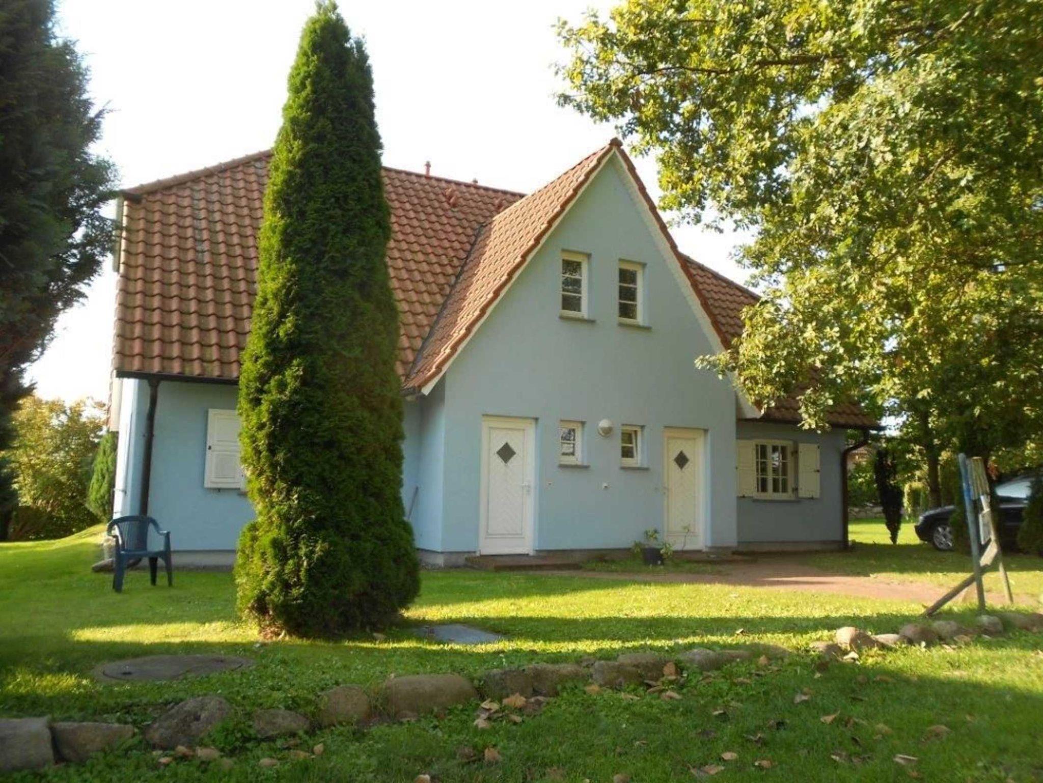 Ferienhaus mit 4 Ferienwohnungen, in der Nähe von Putbus. Das Haus ist 1998 fertiggestellt. Grosser Garten und Süd-Terrassen, eigene Sitzgruppe im Garten oder auf der Terrasse, Sandkasten, Grill, Gartenhaus mit Fahrradständer.