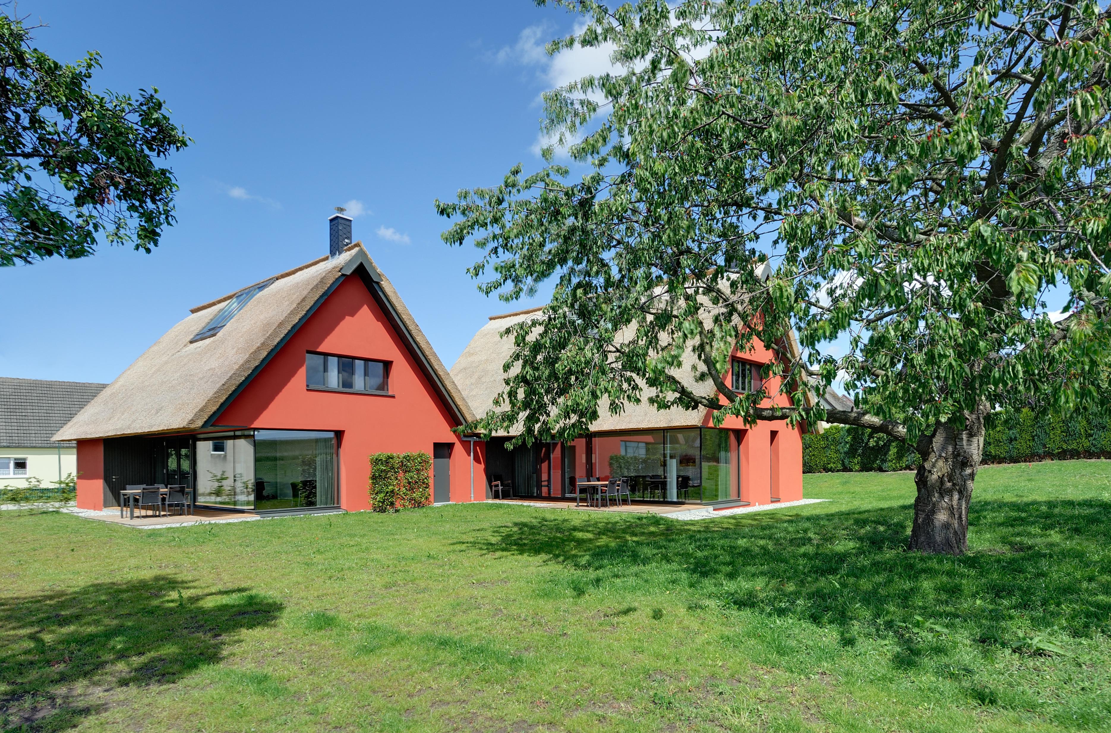 Das Projekt Wreechen 25 wurde von dem Berliner Architekten Norbert Möhring entworfen. Es handelt sich um 2 versetzte Einzelhäuser. Haus 1 mit drei Schlafzimmern und Haus 2 mit zwei Schlafzimmern. Die beiden Schlafzimmer im Dachgeschoss haben jeweils ein eigenes integriertes Duschbad. Die Küche ist sehr gut ausgestattet und läßt keine Wünsche offen. Über dem Esstisch befindet sich eine Empore mit Blick bis zu den großen Dachfenstern. Tagsüber sorgen diese Fenster für lichtdurchflutete Räüme, bei Dunkelheit sieht man bei entsprechender Wetterlage den Mond und die Sterne.