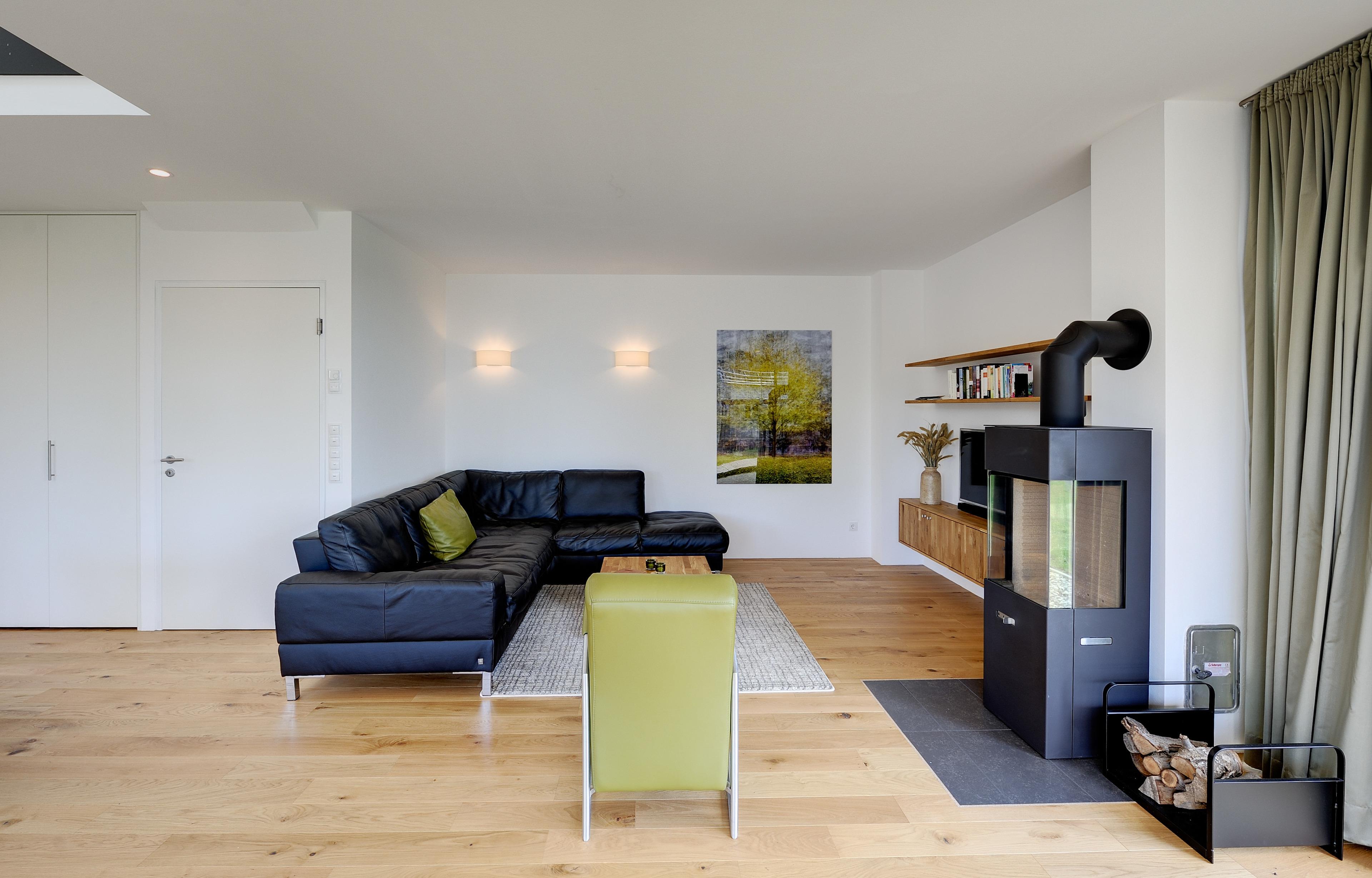 Alle Fenster sind dreifachverglast. Beheizt werden die Häuser in allen Räumen mit einer Fussboden-Zentralheizung. Die Fußböden sind mit massiven Echtholz-Eichendielen belegt.