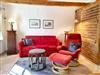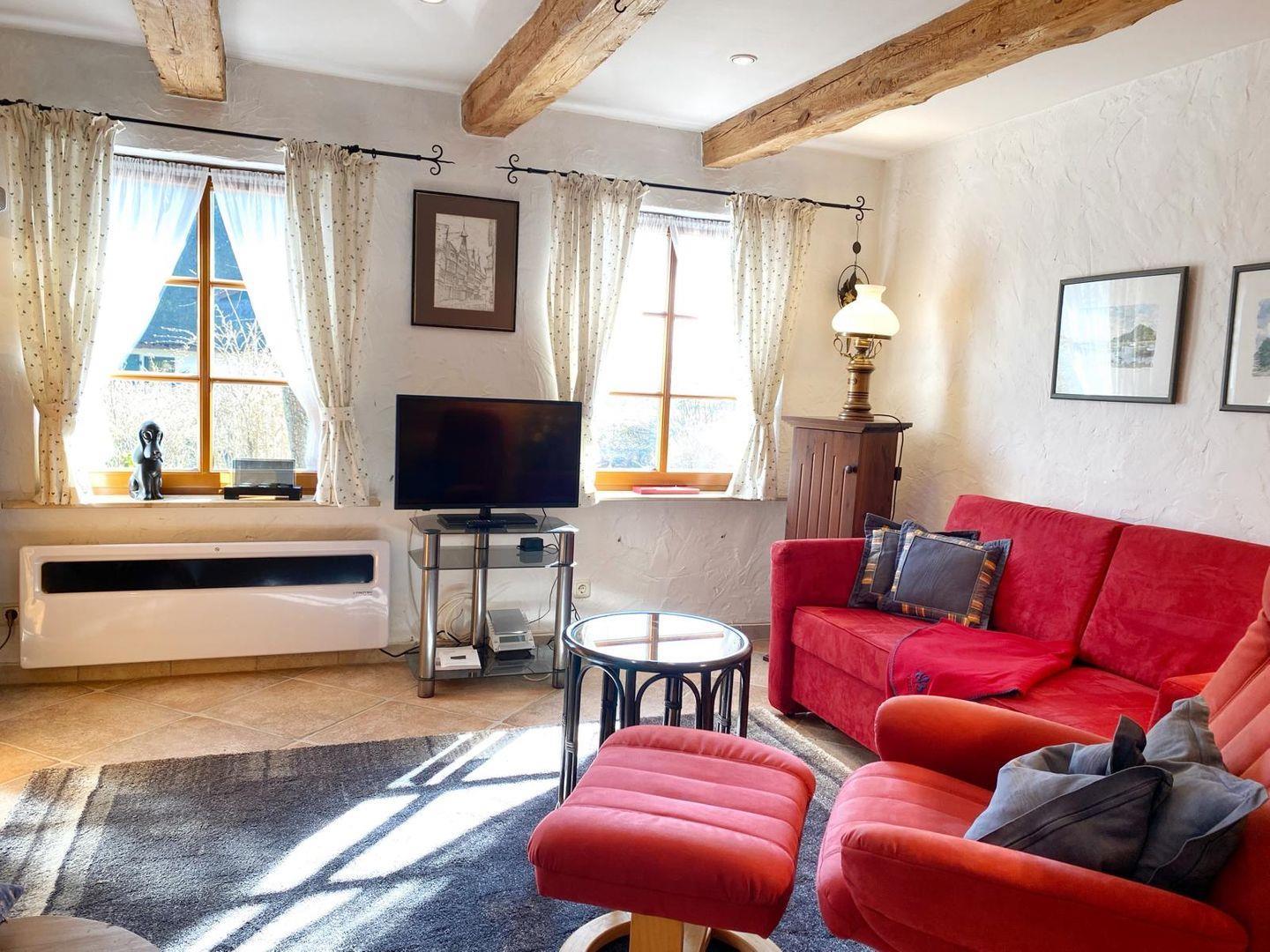 Auch hier gibt es im gemütlichen Wohnbereich mit Couchecke und Flachbild-TV einen Kachelofen mit Ofenbank.