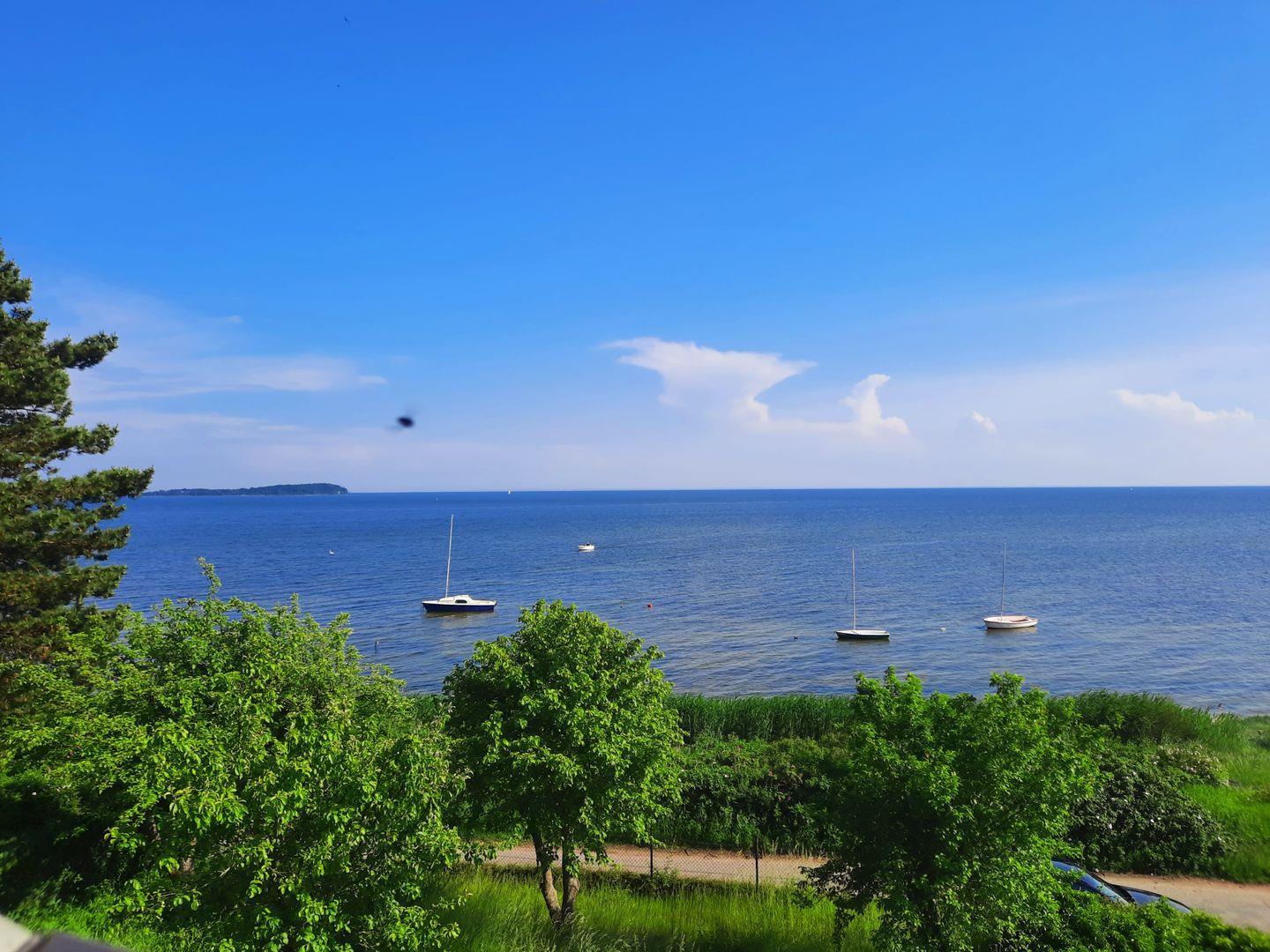 Ferienwohnung Blick auf Vilm bietet Meerblick, Strandnähe und gemütlichen Komfort mit Kamin und Balkon.