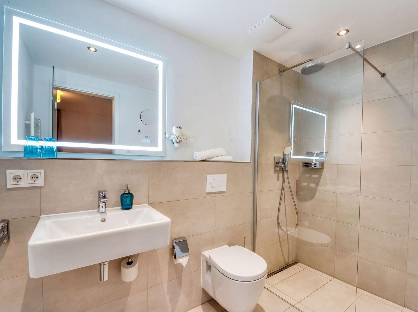 Das Schlafzimmer bietet Ihnen ein komfortables Bett, hochwertige Materialien und genügend Stauraum für Ihr Reisegepäck. Das Badezimmer ist modern ausgestattet und verfügt über sanitäre Anlagen, die sowohl in Design als auch Funktionalität überzeugen. So steht einem entspannten Start in den Tag nichts im Wege.