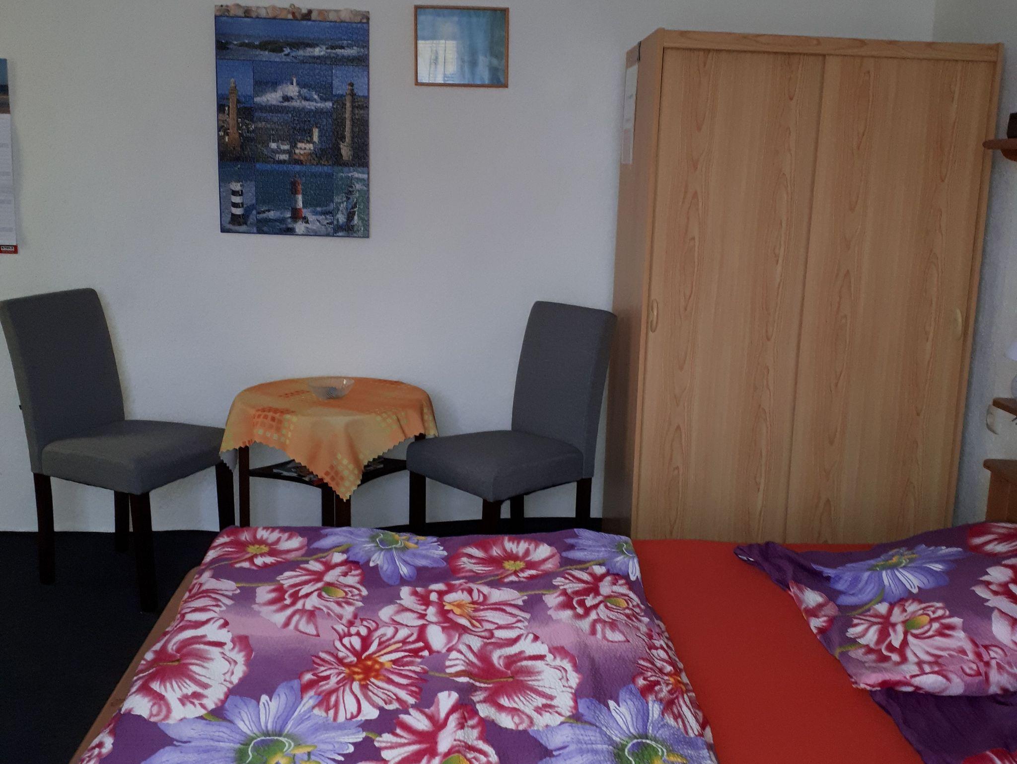 Das Doppelzimmer ist ein Zimmer ohne Küche,für 2 Personen (ohne Frühstück), 17 qm, mit sep. Eingang, ein Doppelbett, , Sat-TV,Wlan, Radio, Du/WC und Waschbecken, Kühlschrank, Kaffeemaschine, Toaster, Wasserkocher,Haarfön, PKW-Stellplatz vorhanden