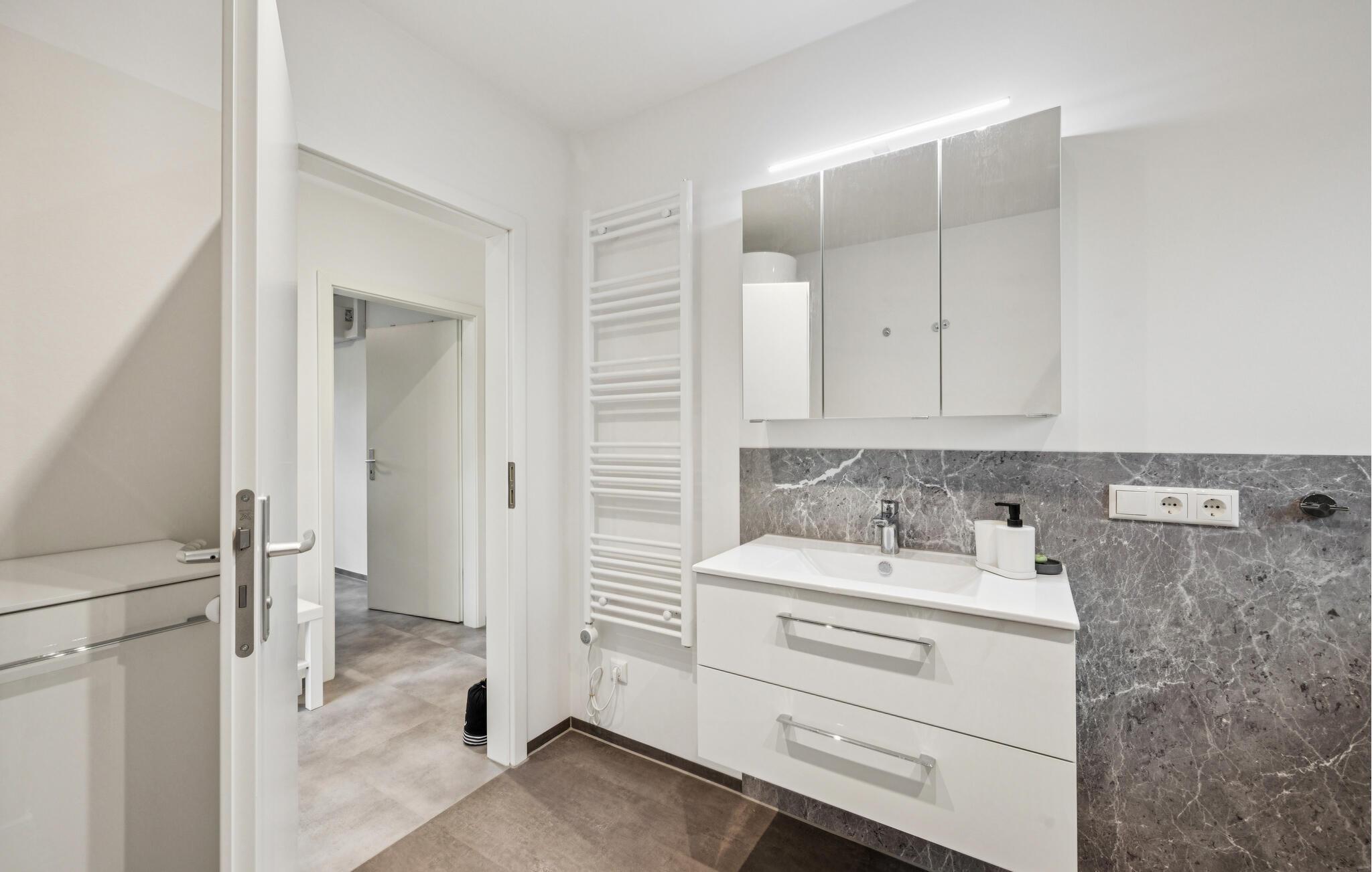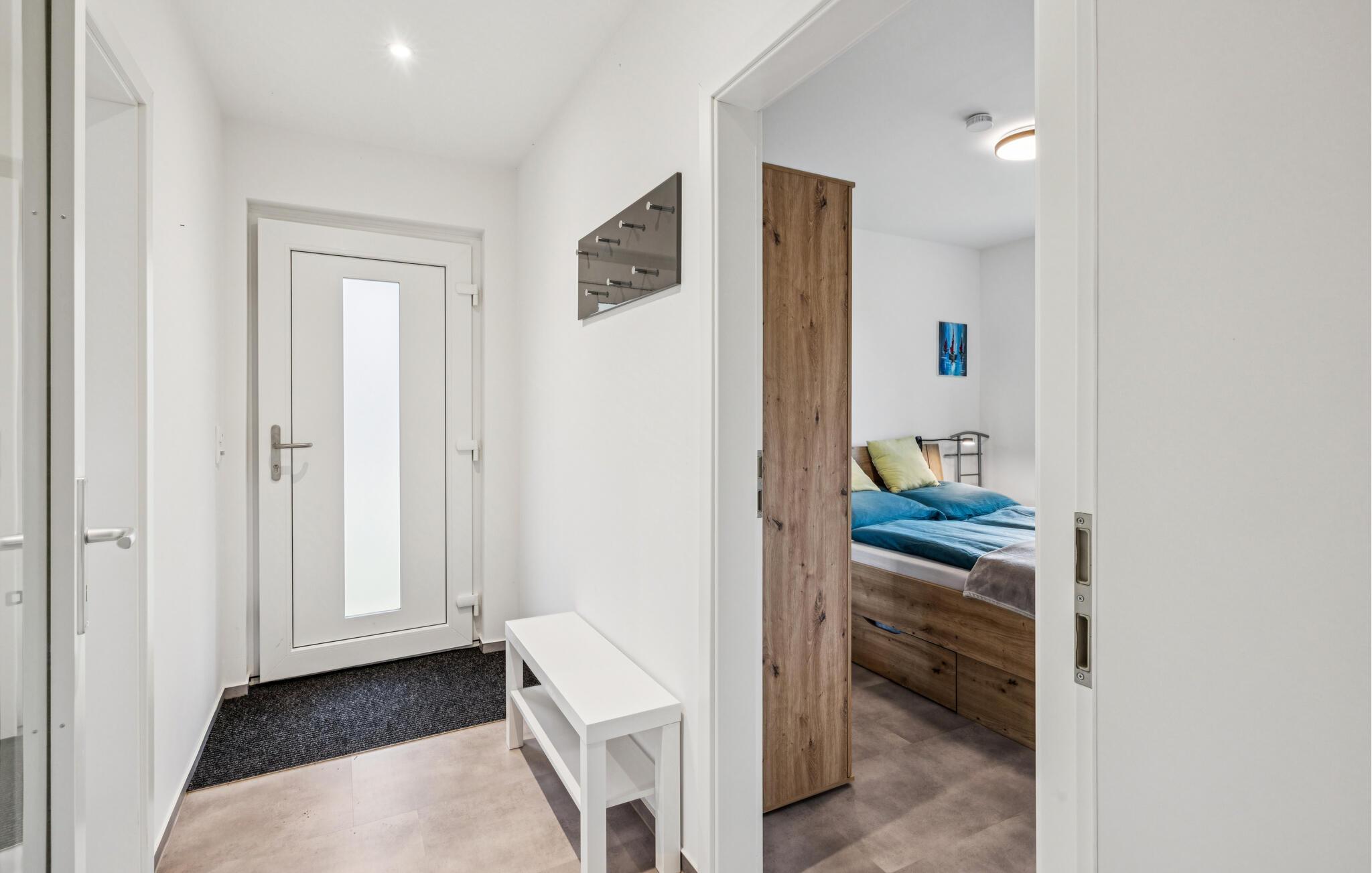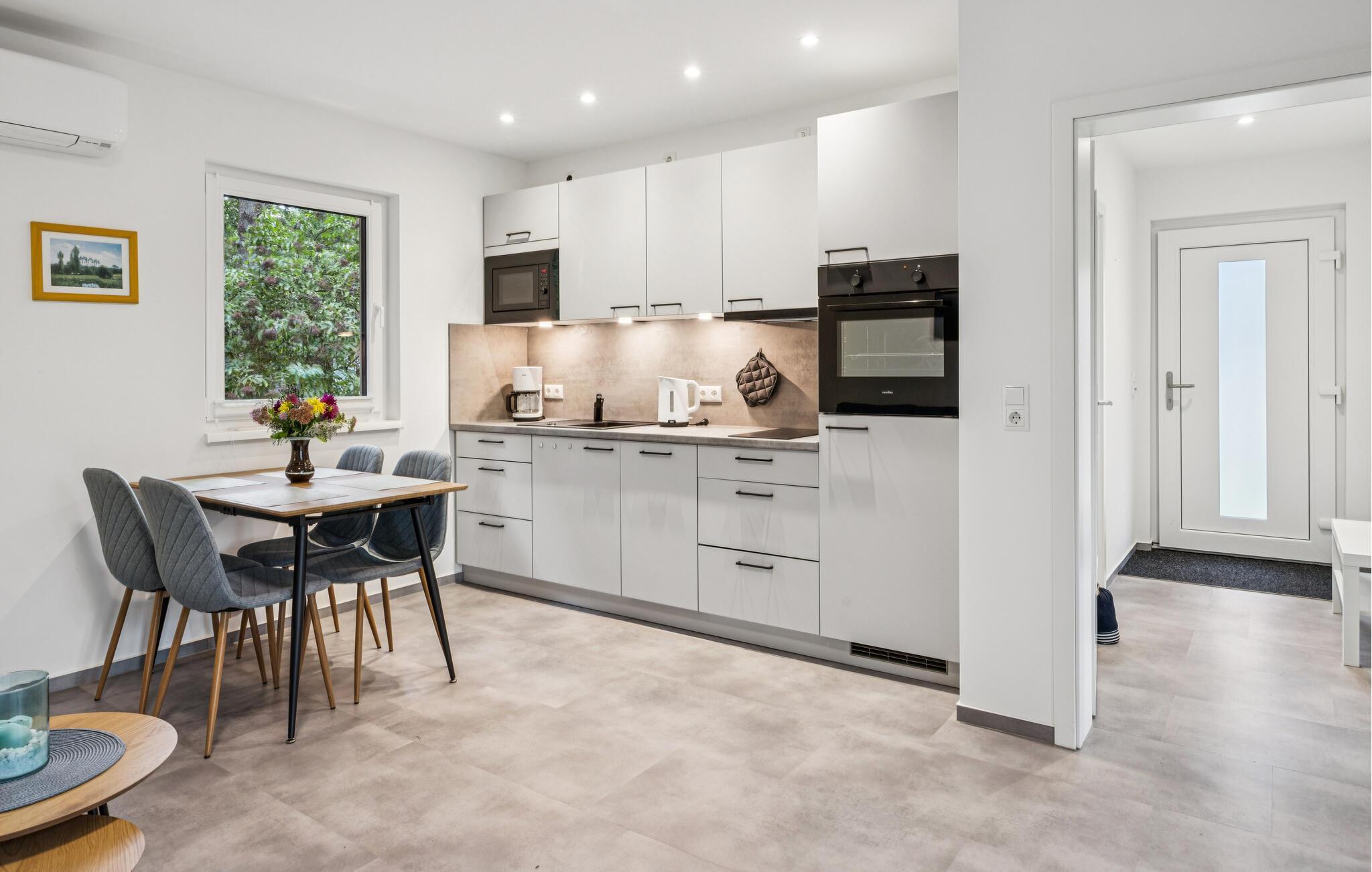 Entspannen Sie im hellen Wohnbereich, der mit modernen Möbeln und einer freundlichen Gestaltung überzeugt. Machen Sie es sich auf dem bequemen Sofa gemütlich oder nehmen Sie am Esstisch neben der modernen, offenen Küche Platz, der ideal für gemeinsame Mahlzeiten geeignet ist.