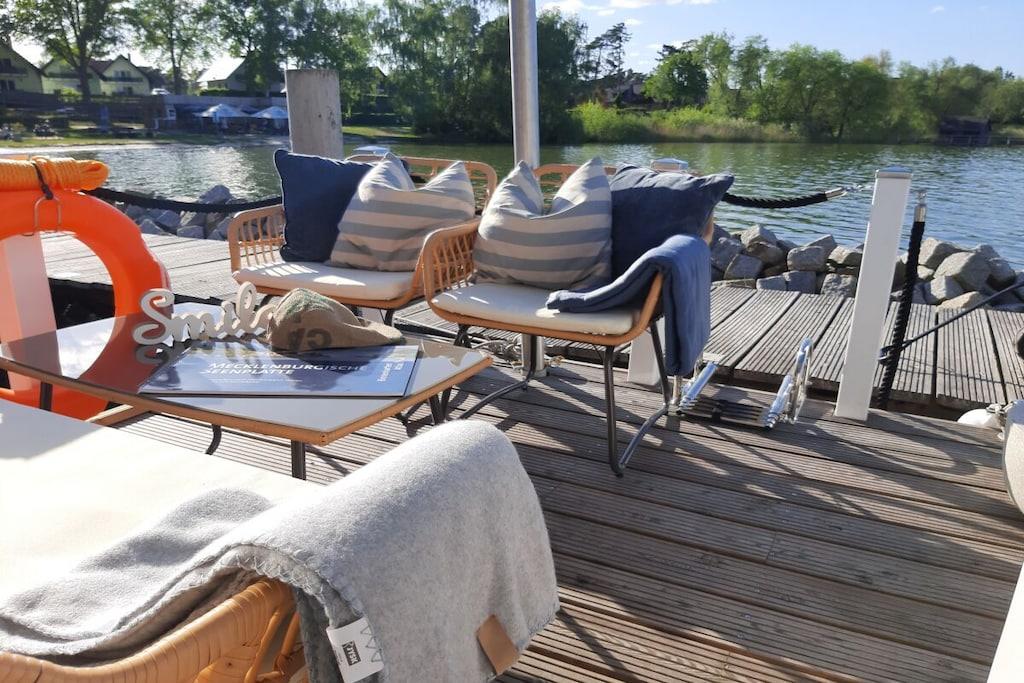 .. Urlaub machen, wo der Frosch ins Wasser springt!!! ... ein Urlaubsvergnügen der besonderen Art.... ... egal ob Sie im Hafen liegen und dem Treiben am und auf der Müritz lauschen oder das Land der tausend Seen als Freizeitkapitäne mit unserem für ein bis drei Tage autarkem Hausboot auf dem Wasserweg erkunden - es wird einfach toll - ... mit einem Boot in einsame Buchten oder zu unberührten Sandstränden fahren und sich wie ein Baby von den sanften Wellen in den Schlaf wiegen lassen.... am nächsten Morgen die aufgehende Sonne beobachten und einfach vom Boot aus, in die erfrischenden Fluten springen... um danach den duftenden Kaffee, zum Frühstück, auf der Dachterrasse zu genießen. Jaaaa ....... das kann euer Urlaub sein ....