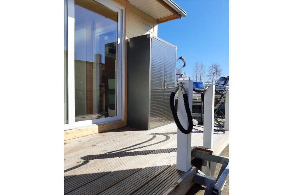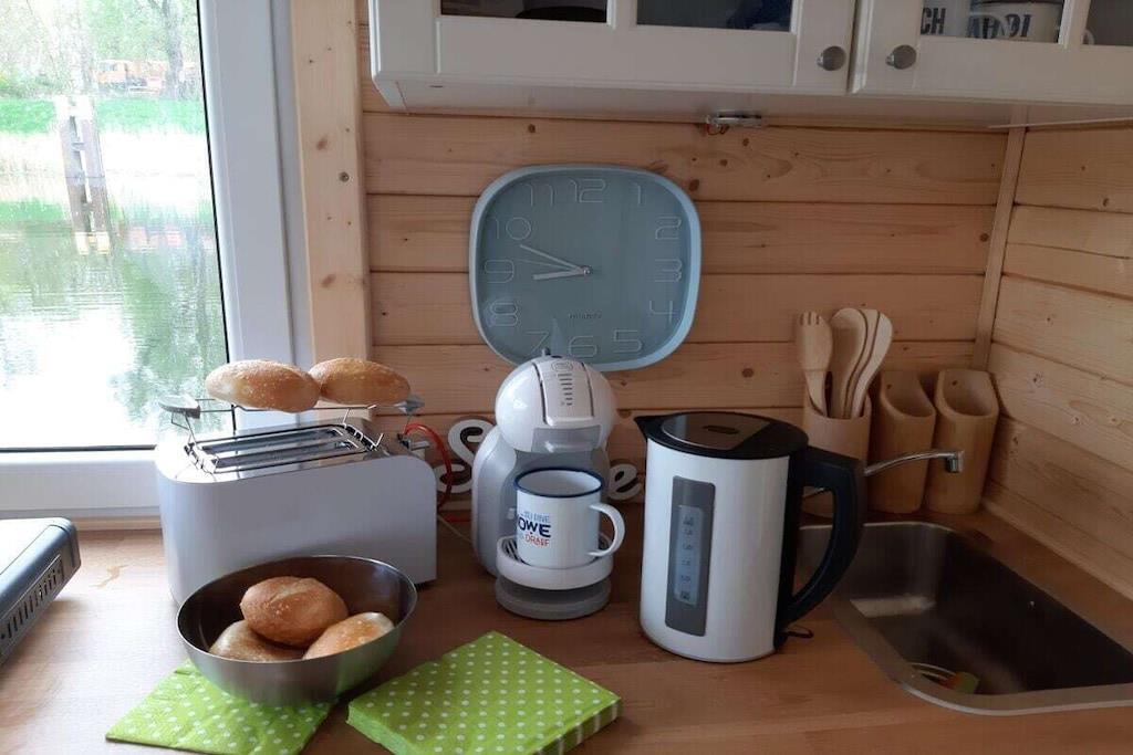 Parterre: (offene Küche(Herd, Kochherd, Kühlschrank), Wohn-/Schlafzimmer(, , Kochnische, Einzelklappbett , Einzelklappbett , Esstisch, Radio, Wasserkocher, Kochherd, Kaffeemaschine, Grill, Kühlschrank), Schlafzimmer(, , Doppelbett, TV, Radio), Badezimmer(, Toilette, Dusche, Waschbecken)) , , Erste-Hilfe-Station, Terrasse(Gartenmöbel), Liegestühle(Liegen), Fahrräder verfügbar