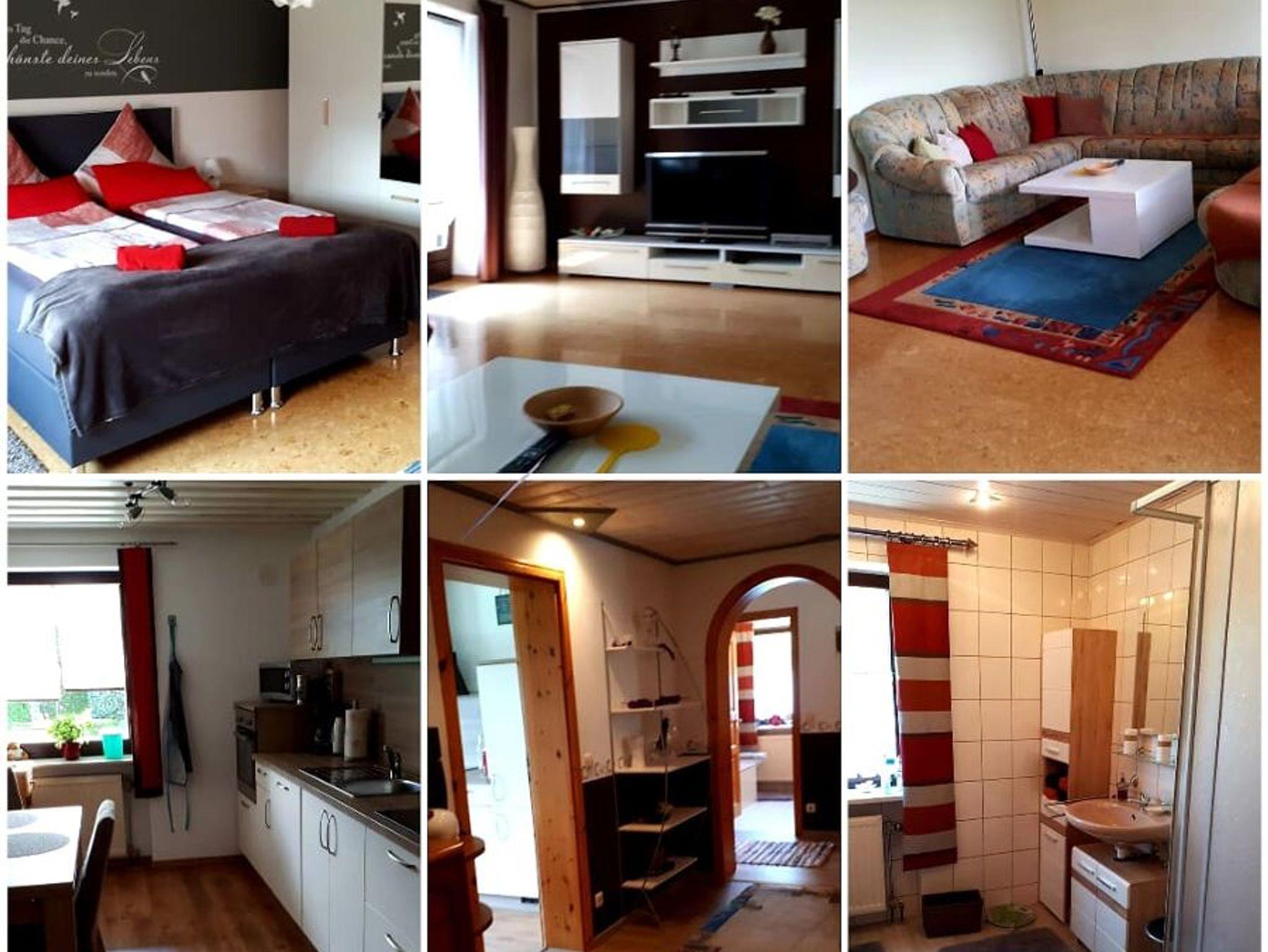 Die Wohnung ist komplett neu renoviert und bietet Direktzugang zum Garten. Die Küche ist ausgestattet mit Geschirrspüler, Mikrowelle, Kaffeemaschine, Toaster, Wasserkocher und ist komplett neu eingerichtet. Das Bad ist mit Dusche, WC und Badewanne ausgestattet. Handtücher und Föhn sind vorhanden. Im Schlafzimmer befindet sich ein neues Boxspringbett und eine Schlafcouch. Bettwäsche ist natürlich inbegriffen. Das Wohnzimmer ist geräumig mit großer Couch und Wohnwand mit TV. Sie werden sich in der Wohnung sicher wohlfühlen. Die Wohnung ist eine Nichtraucherwohnung. Der Kühlschrank ist mit einer kleinen Auswahl von Getränken gefüllt die Sie laut Preisliste erwerben können.