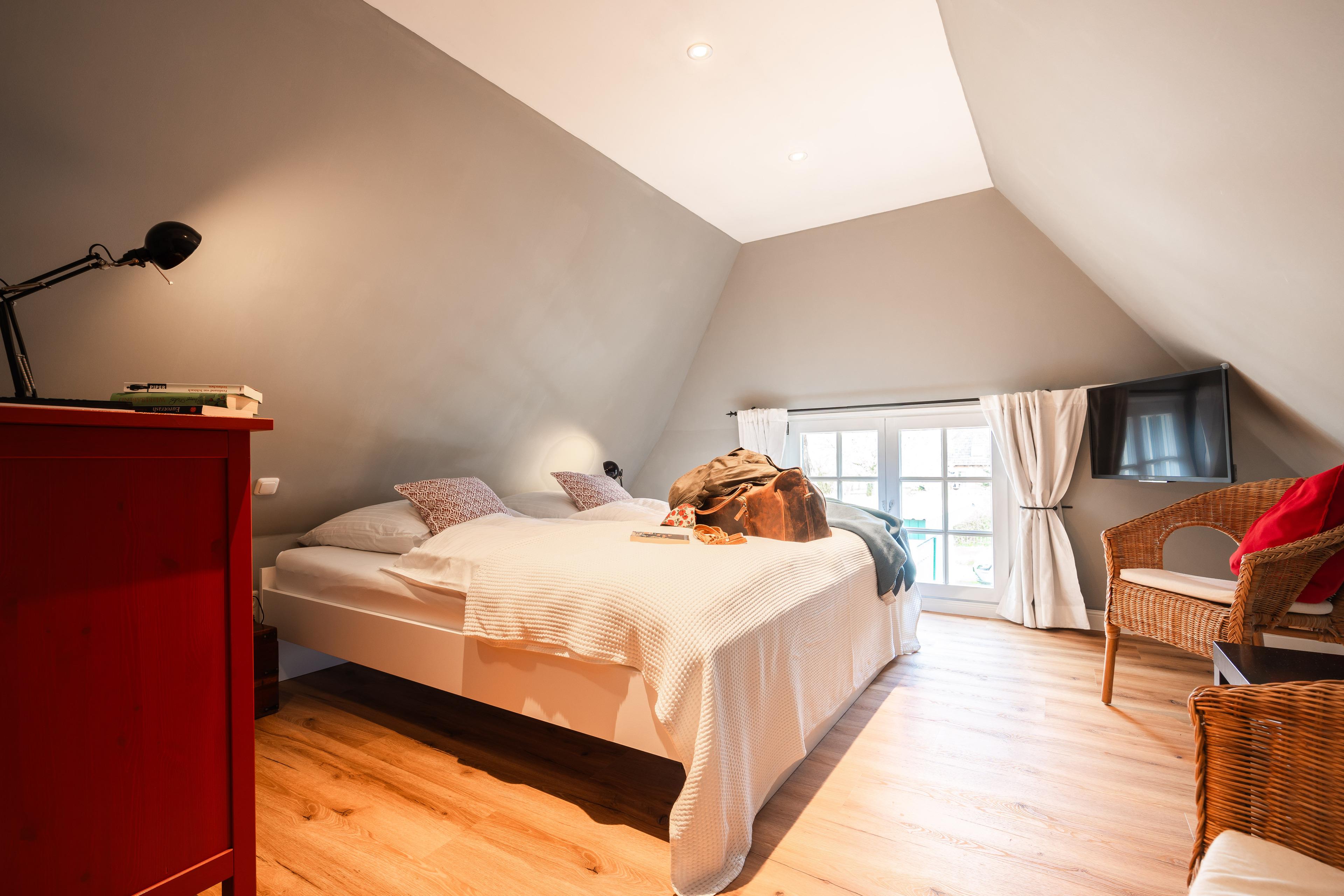Am Kaminofen lässt es sich abends einfach herrlich abschalten . WLAN mit Glasfaser steht kostenlos zur Verfügung. Das Haus ist 2024 komplett saniert und verfügt über einen Wohn-Essbereich mit einer offenen vollaugestatteten Luxusküche. Die Heizung ist eine hochmoderne Wandheizung, die ein herrliches Raumklima schafft. Neben dem Vorraum mit klassischer Klönschnacktür, befindet sich das Bad mit Regendusche. Im oberen Teil des Ferienhauses sind 2 schöne Schlafzimmer mit Doppelbetten, in die man sich herrlich zurückziehen kann. Der Wellnessbereich für all unsere Gäste auf dem Hof lässt mit seiner finnischen Sauna und Infrarotkabine keine Wünsche offen. Auch ihr E-Auto hat eine schnelle Ladestation.