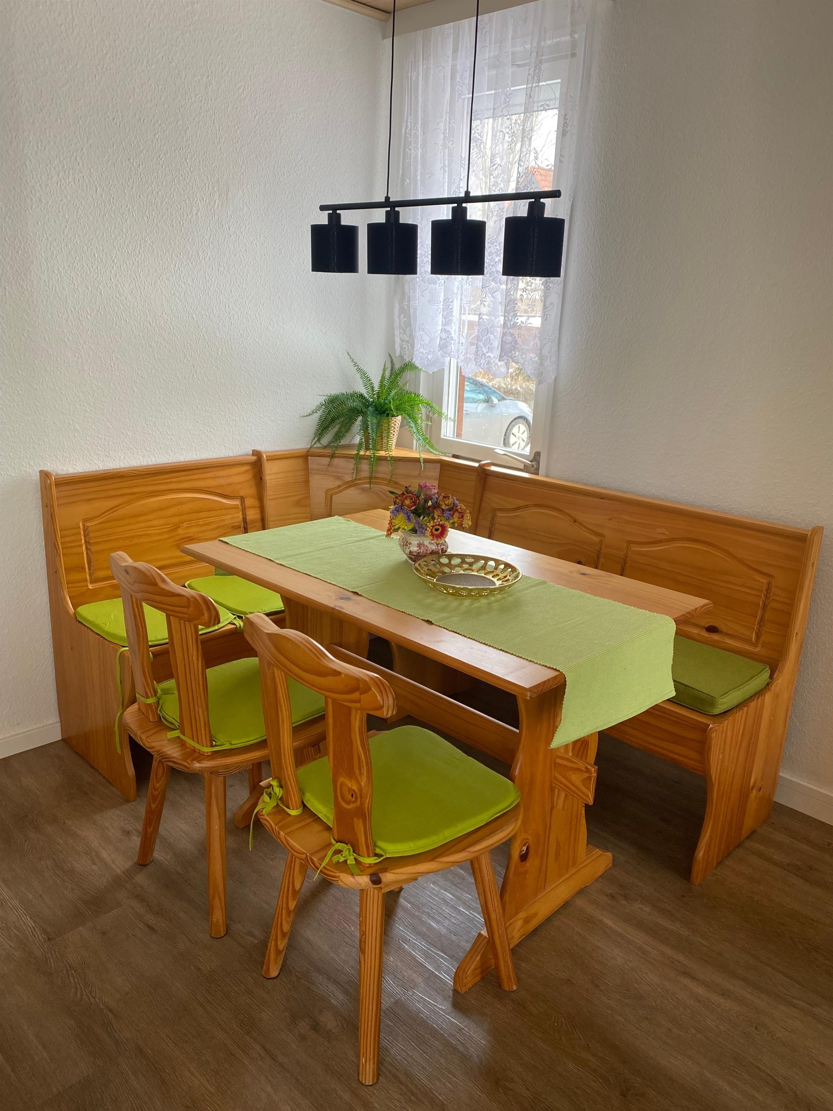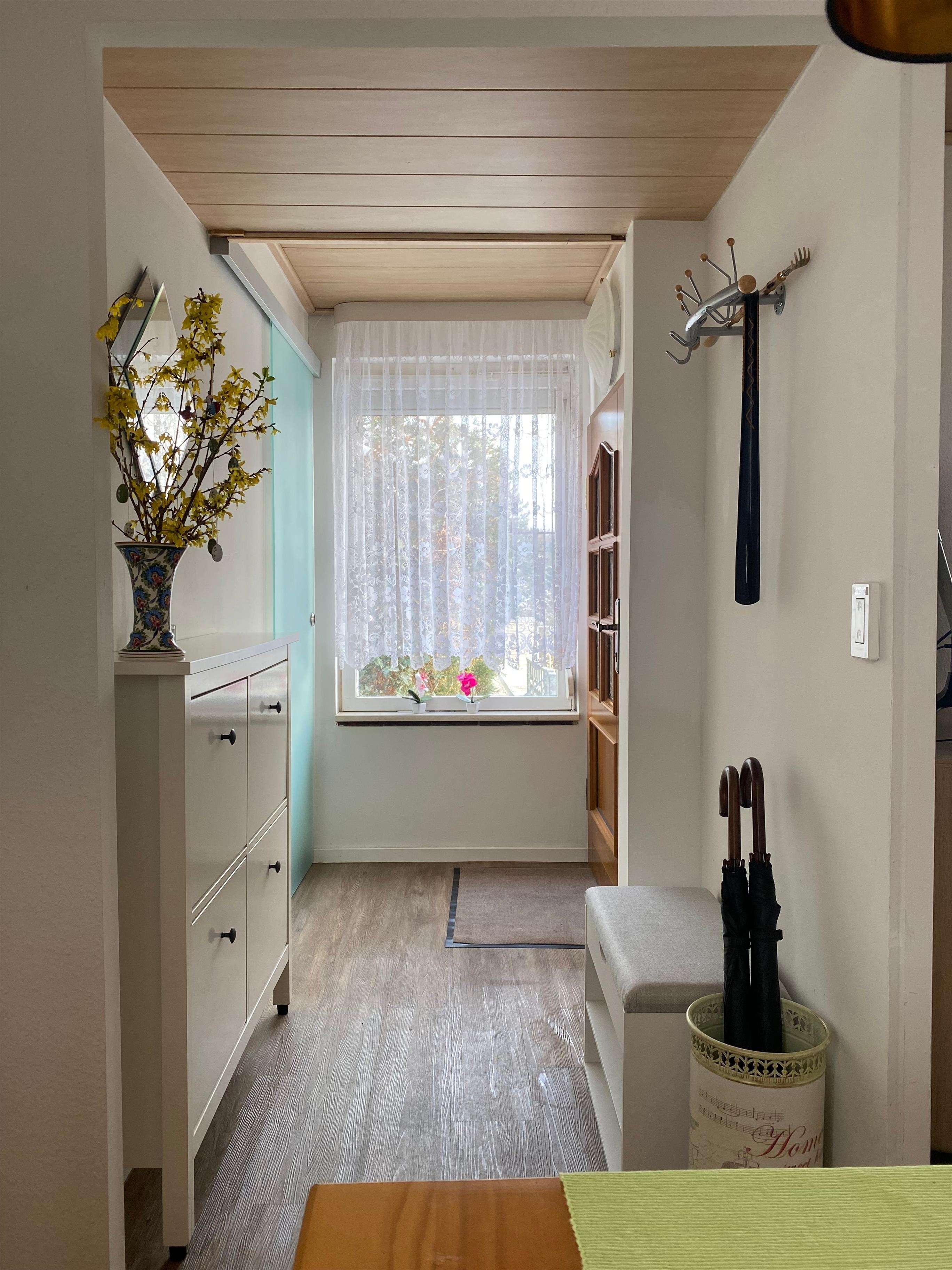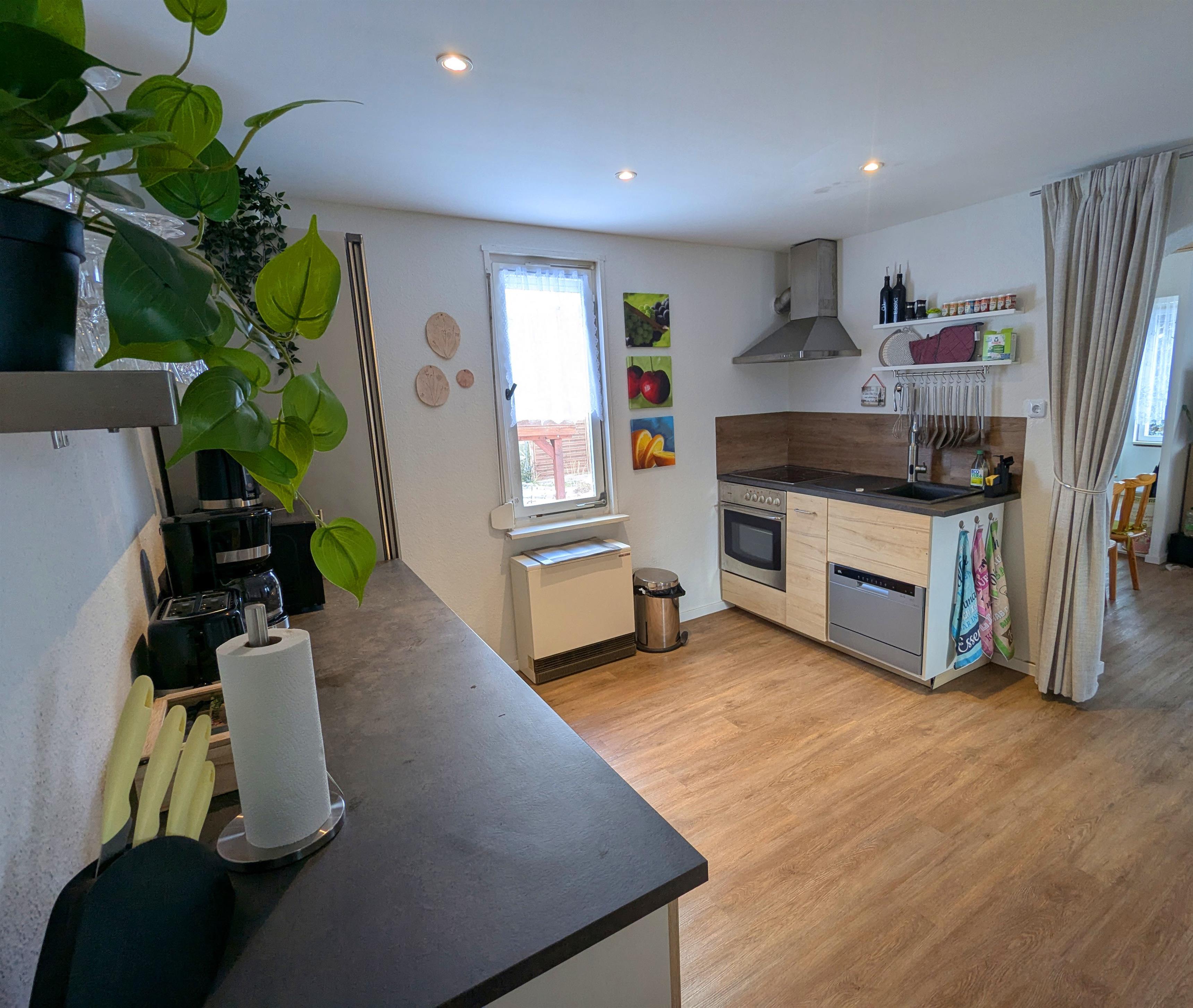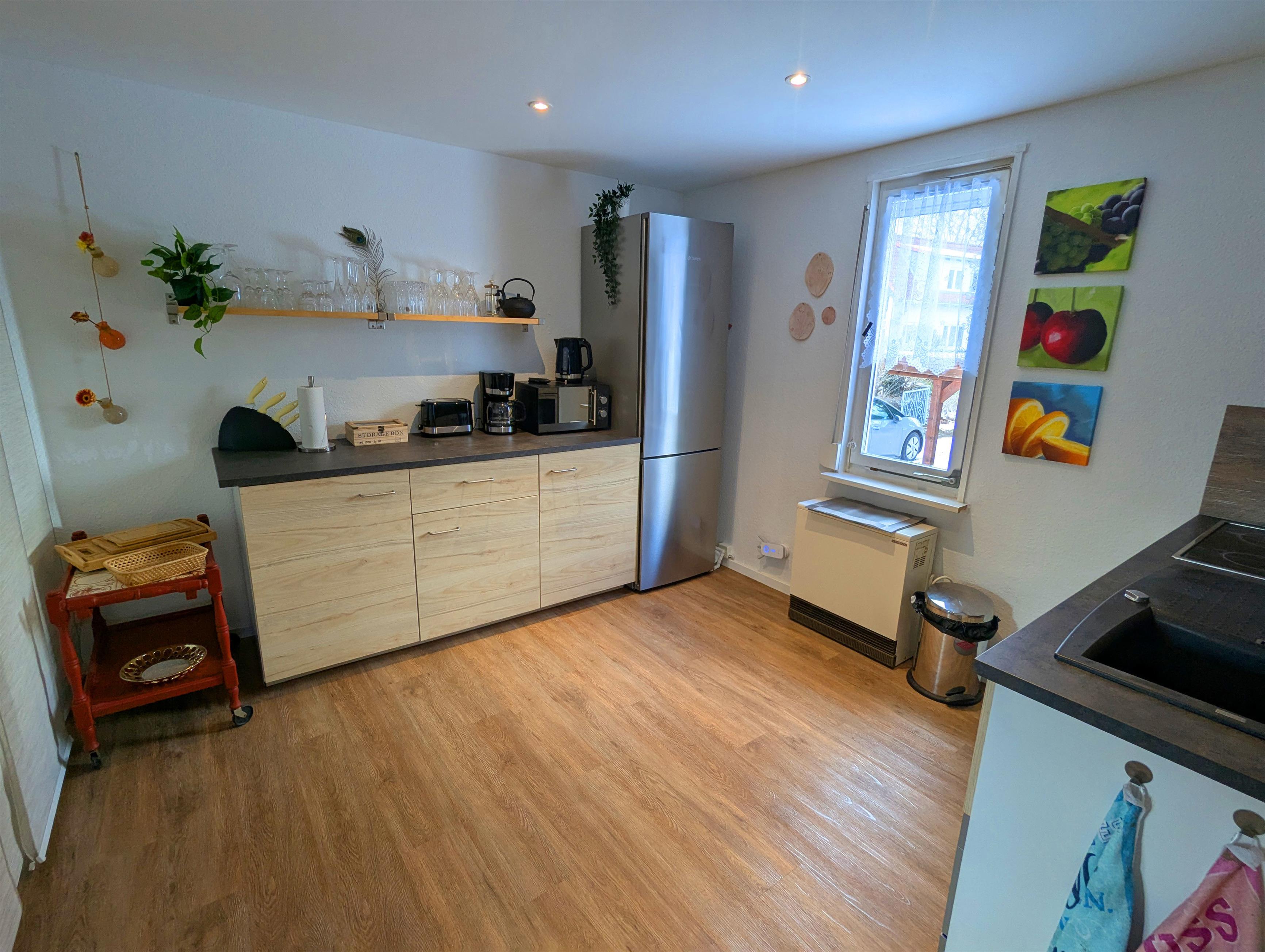 Waschmaschine und Trockner sind bei längeren Aufenthalten oder auf Anfrage im nicht zugänglichen Kellerbereich verfügbar. Eine Hausmappe mit nützlichen Informationen zu Freizeit, Einkauf und Notfall ist bei Ankunft stets aktualisiert auf dem Tisch. Als Wertschätzung Ihres Besuches in unserer schönen Region finden Sie eine Flasche leckeren Küchler Wein als Willkommensgruß im Kühlschrank. Eine gewisse kulinarische Grundausstattung für den Ankunftsabend und den nächsten Morgen stellen wir ebenfalls bereit.