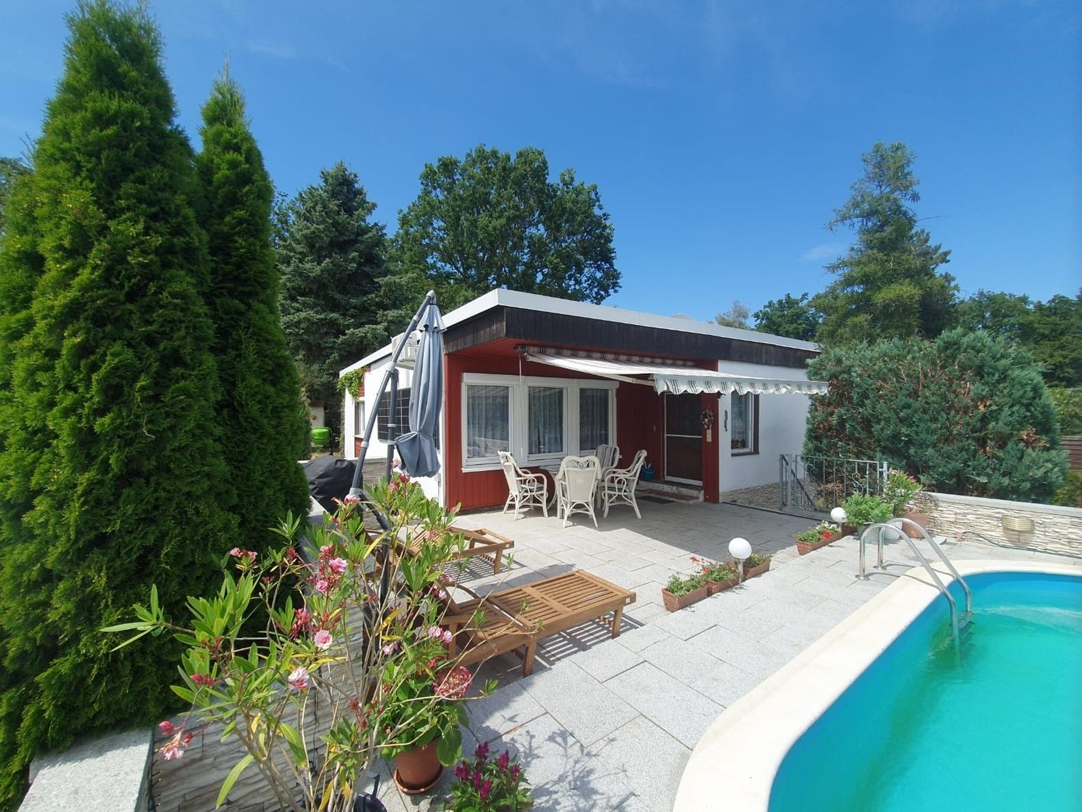 Die Küche ist sehr gut ausgestattet, so dass Sie nichts mitbringen müssen. WLAN ist mit 50MBit im ganzen Haus und Grundstück verfügbar. Der Pool wird auf eigene Gefahr freigegeben - Kinder und Nichtschwimmer müssen permanent beaufsichtigt werden! Da Sie ein Ferienhaus im Erholungsgebiet mieten, sind leider keine Partys und ähnliche störende Aktivitäten gestattet. Dies ist Bedingung zur Anmietung und muss unbedingt eingehalten werden. Genießen Sie die Ruhe der Natur und das Gezwitscher der zahlreichen Vogelarten. Das Grundstück ist für Hunde zur Zeit noch nicht komplett "ausbruchsicher" umzäunt.