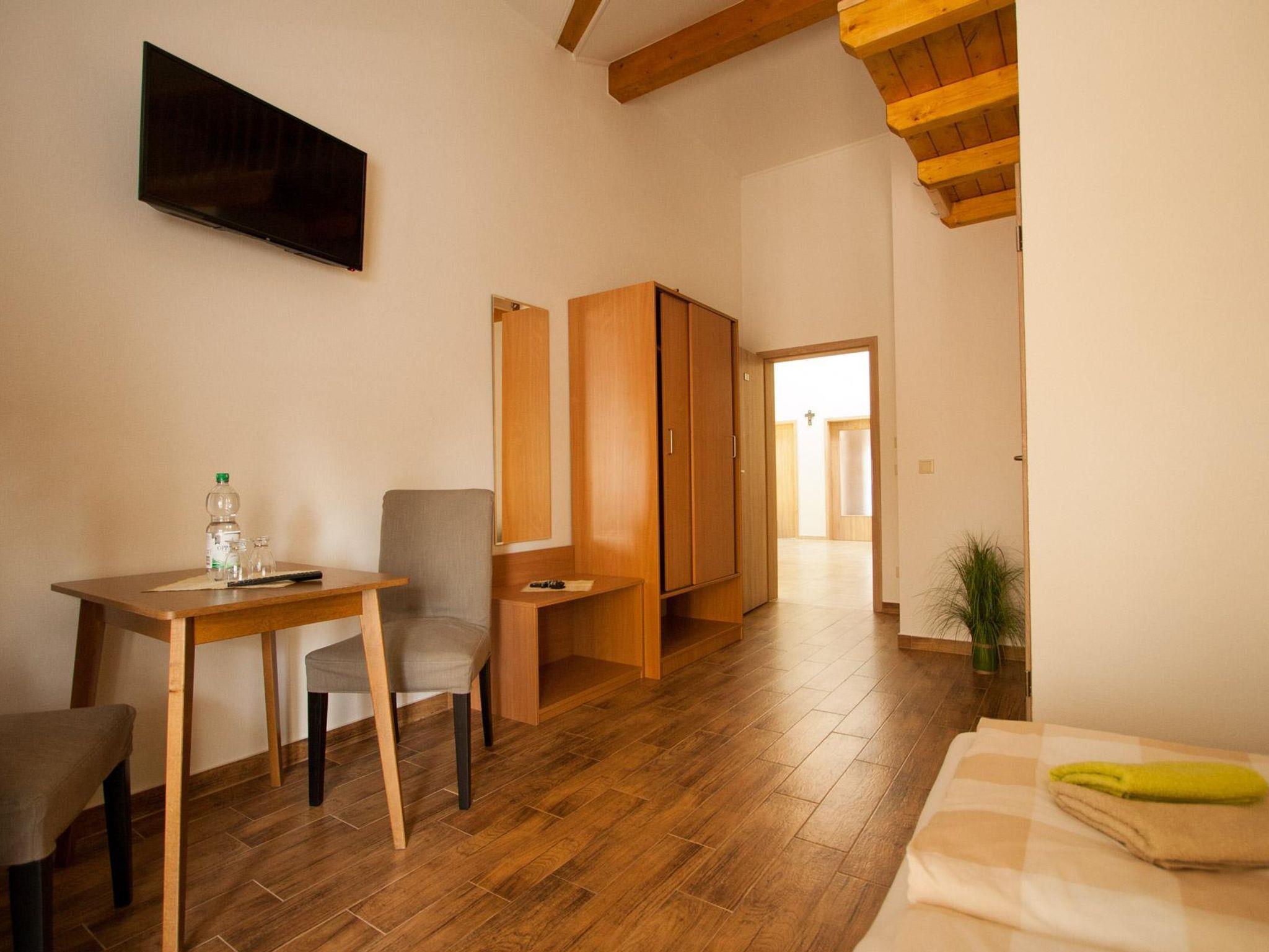 Es ist zudem schön hell, hat einen Balkon mit Gartenblick, Sat-TV, freies WLAN, großen Schrank und 2 Sitzgelegenheiten mit Tisch. Wie alle Zimmer haben Sie auch hier ein modernes Bad mit Dusche.